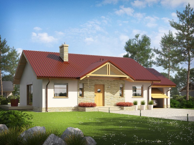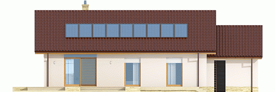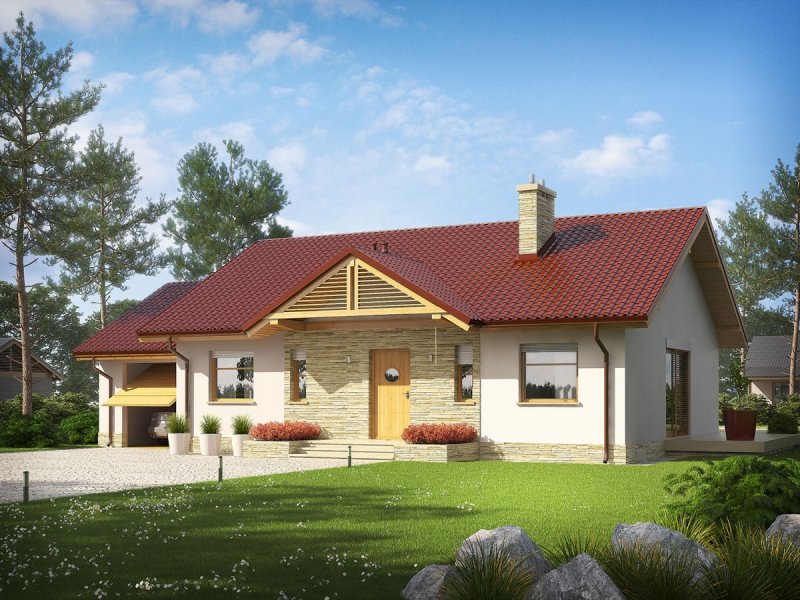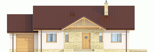 Kornel III G1 ENERGO to pełen wdzięku dom zaprojektowany z myślą o inwestorach ceniących nowoczesne rozwiązania i urok tradycyjnej architektury. Zwarta bryła, prosty dwuspadowy dach i optymalny układ okien podkreślają energooszczędny charakter domu i minimalizują ryzyko wystąpienia mostków termicznych. Strefa wejściowa została stylowo zaakcentowana funkcjonalnym zadaszeniem stanowiącym doskonałą ochronę przed deszczem i śniegiem. Elewację zdobi wysmakowana kompozycja materiałów - chłodna biel tynku została ozdobiona urodą naturalnego kamienia oraz drewnianymi detalami, a całość przykryta dachówką w tradycyjnym kolorze. Wnętrze zostało zaplanowane z troską o ergonomię i najwyższy komfort użytkowy. Przestronny taras z widokiem na ogród stanowi idealne miejsce do wytchnienia w kojącym otoczeniu przydomowej zieleni.