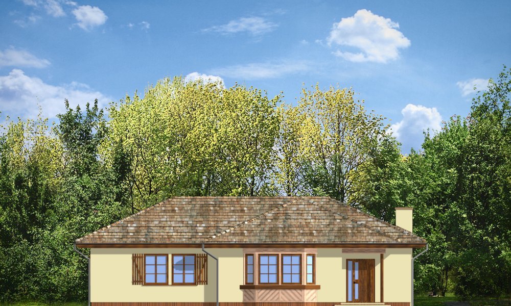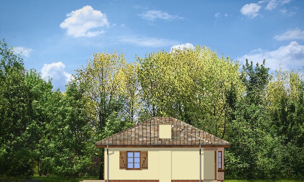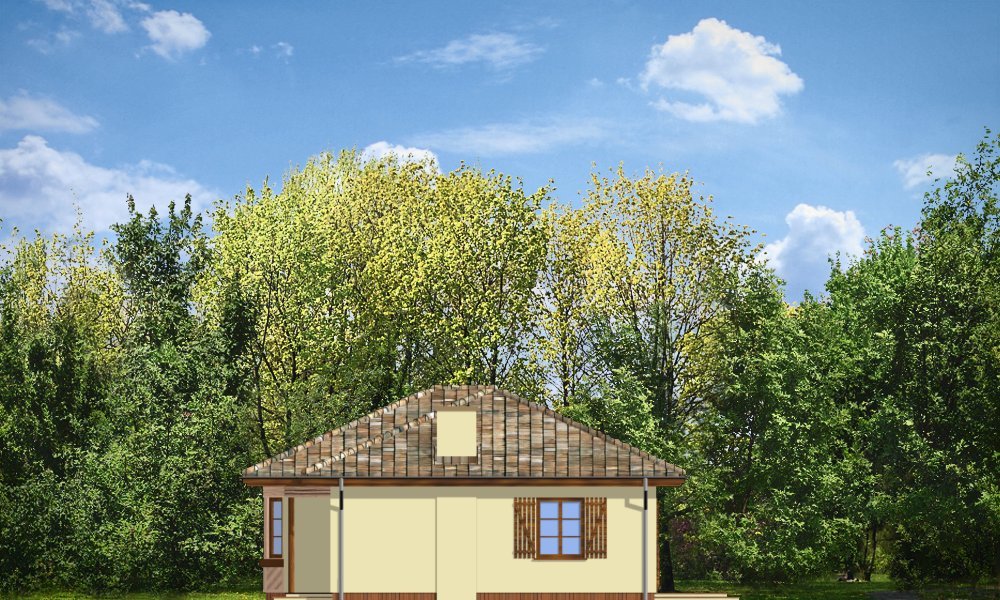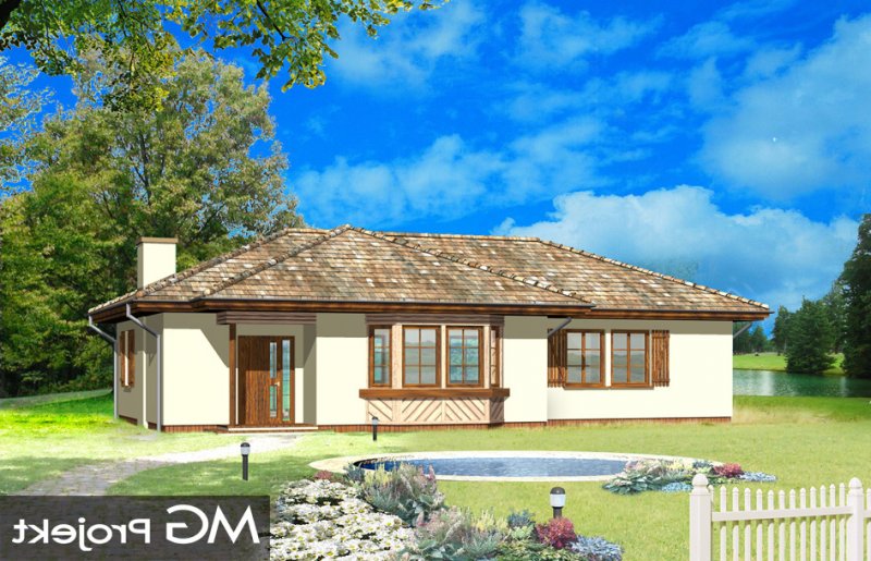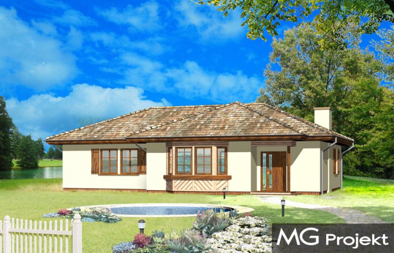 Kujawiak to wygodny, przestronny bungalow dla 4-5 cioosobowej rodziny. Dom posiada rozbudowaną elewację frontową, podkreślającą reprezentacyjny charakter architektury budynku. Projekt dzięki nietypowemu ukształtowaniu wnętrza nadaje się na działkę z wjazdem i ogrodem od frontu, jak też na działkę z ogródkiem z tyłu budynku. Pracownia posiada również projekt w wersji odbicia lustrzanego.