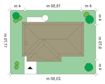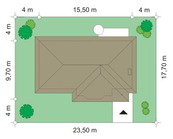 - Min. wymiary działki 23.50x17.70 m