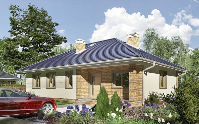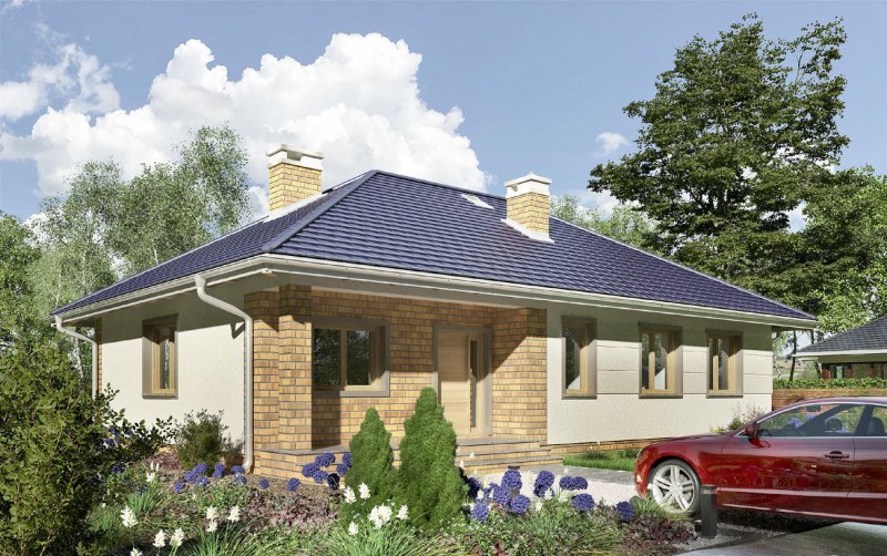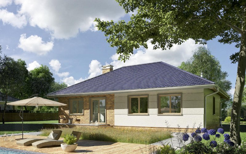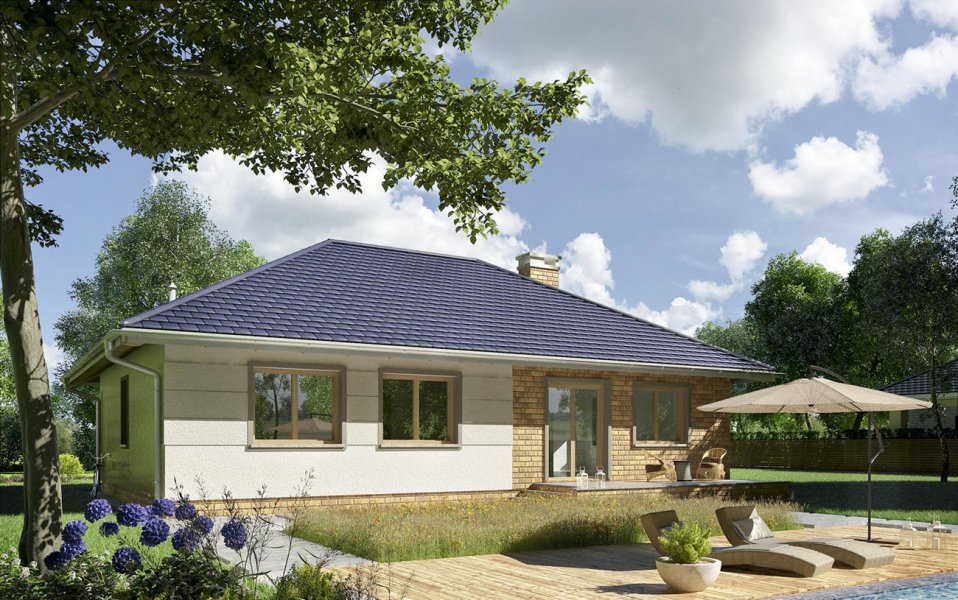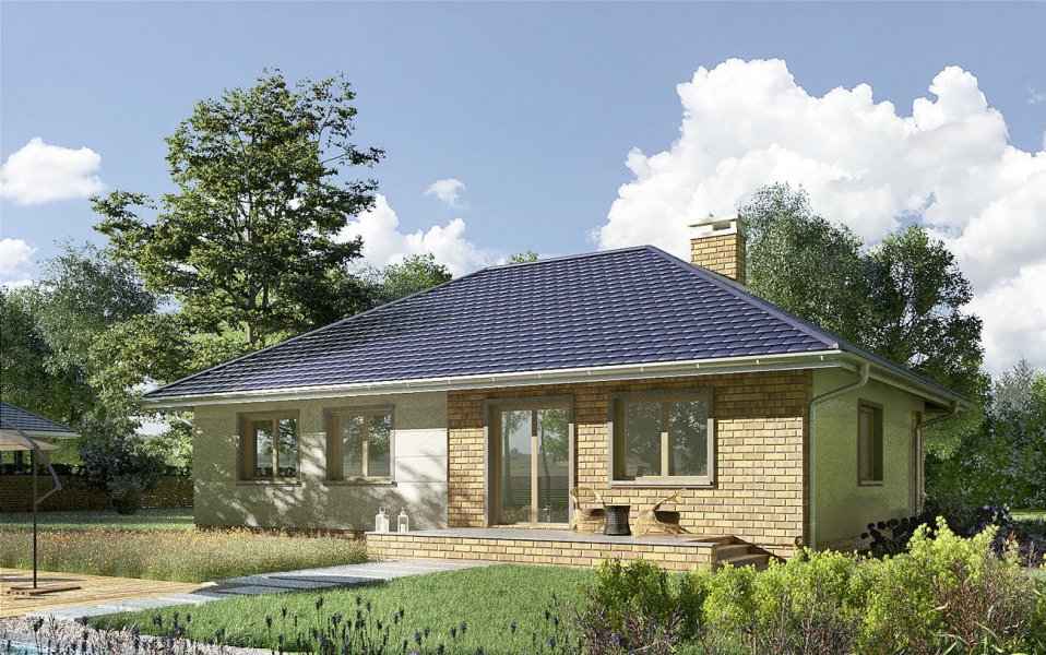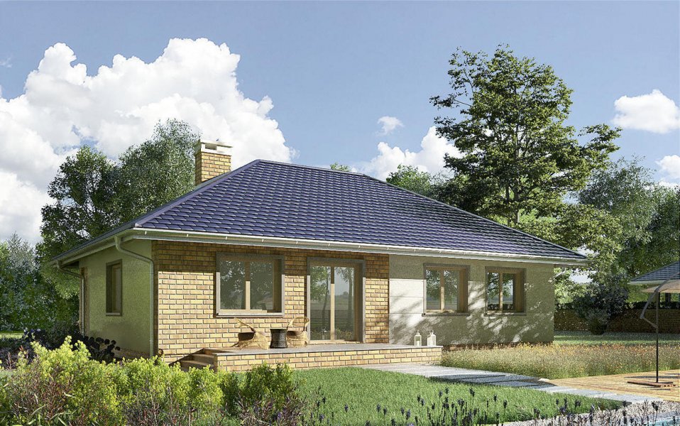 Dom parterowy, taki jak projekt Lena, wymaga większej działki niż dom o podobnej powierzchni z użytkowym poddaszem. Ważne jest też bardzo staranne ocieplenie stropodachu ze względu na większą powierzchnię ucieczki ciepła przez dach. Taki budynek oferuje jednak w zamian niezwykły komfort użytkowania za sprawą braku różnicy poziomów w mieszkaniu. Jest to nieoceniona zaleta , którą powinny rozważyć przy wyborze projektu domu rodziny z małymi dziećmi, osoby mające trudności w poruszaniu się i seniorzy. Projekt domu Lena ma ponadto, preferowany w nowoczesnej architekturze domów jednorodzinnych, otwarty układ części dziennej . Kominek umożliwia częściowe uniezależnienie się od zewnętrznych źródeł ciepła np. przez zastosowanie systemu dystrybucji gorącego powietrza (DGP). Do składowania drewna na opał, architekt adaptujący może doprojektować wpasowaną w charakter architektury Leny konstrukcję w postaci np. regału pod okapem ściany bocznej.