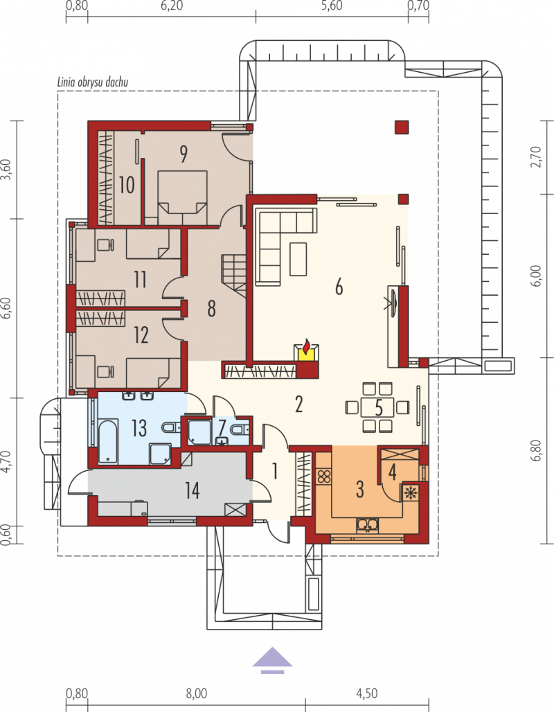 Dom parterowy z poddaszem do adaptacji, niepodpiwniczony. Przeznaczony dla 4-osobowej rodziny. Strefę dzienną tworzy salon z kominkiem, łączący się z jadalnią oraz kuchnią, przy której mieści się praktyczna spiżarnia. Strefa nocna to trzy sypialnie w tym jedna z garderobą oraz duża łazienka. Dodatkowa łazienka znajduje się tuż przy strefie dziennej. W domu przewidziano również miejsce na obszerne pomieszczenie gospodarcze z kotłem grzewczym. Schody umieszczone w korytarzu prowadzą na poddasze, które może być zagospodarowane, według potrzeb rodziny – na strych lub dodatkową przestrzeń mieszkalną. Dom Liv 3 dzięki dużej ilości okien, w tym okien połaciowych imponuje swoim słonecznym charakterem. Naturalne światło swobodnie przenika do wnętrz, tworząc jasny, przytulny klimat. Na szczególną uwagę zasługuje przestronny salon z nastrojowym kominkiem, w którego blasku można cieszyć się bliskością rodziny i przyjaciół. Atutem domu jest również ciekawie zaprojektowany taras. Nowoczesny i elegancki styl budynku podkreśla gustowna kompozycja materiałów, zastosowanych na elewacji. Istnieje możliwość: - podpiwniczenia budynku