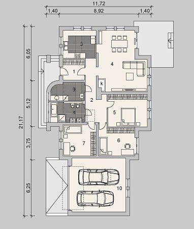- Pokrycie dachu: dachówka ceramiczna Koramic Actua 10 firmy Wienerberger, kolor: czarna angoba