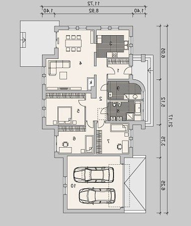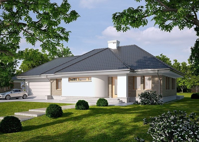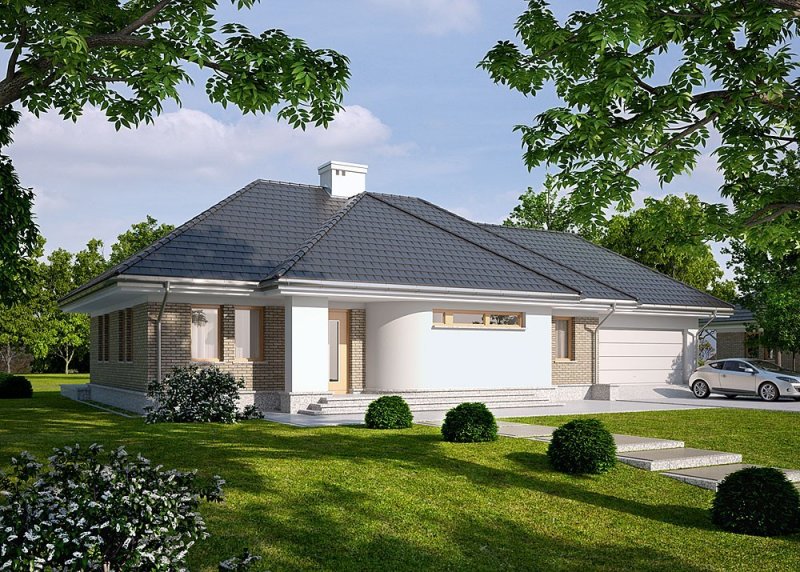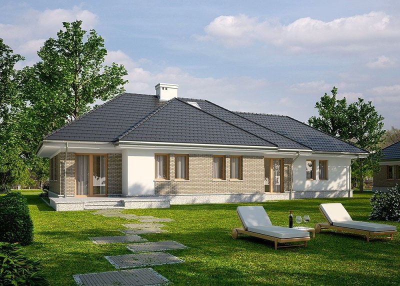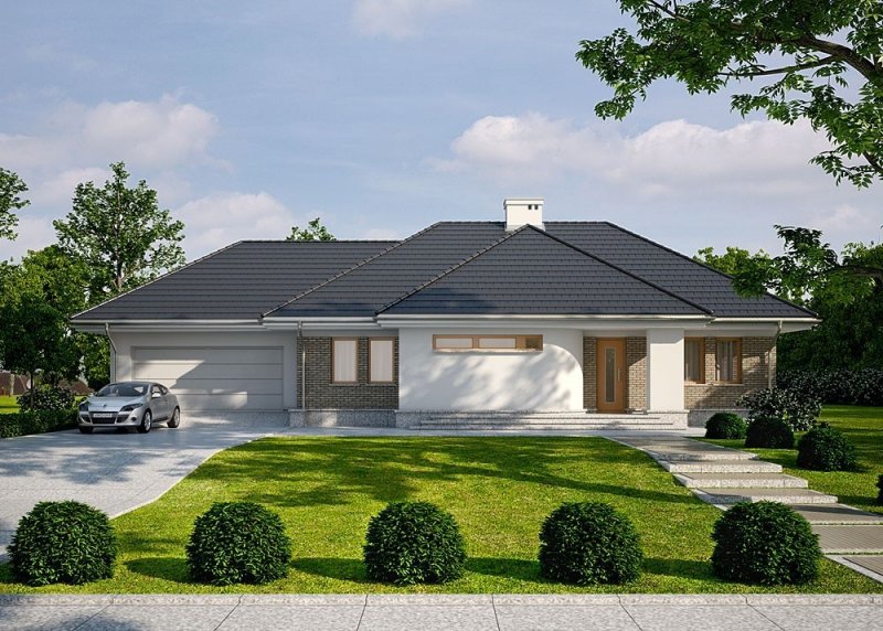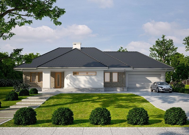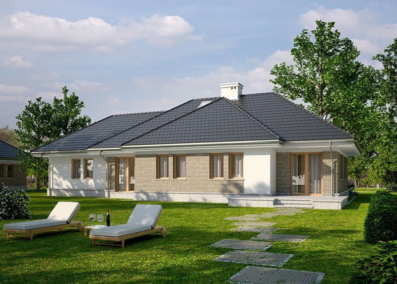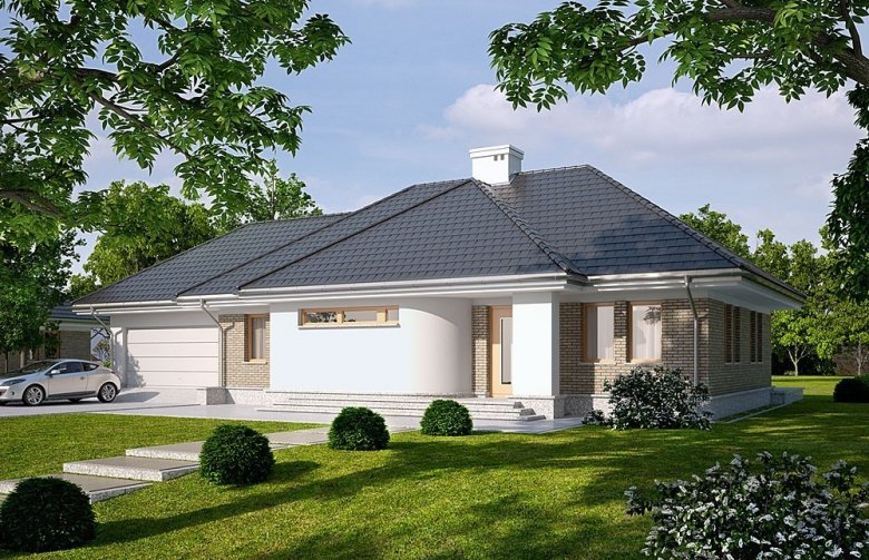 Projekt parterowego domu jednorodzinnego. Posiada przestronne pomieszczenie strychowe.