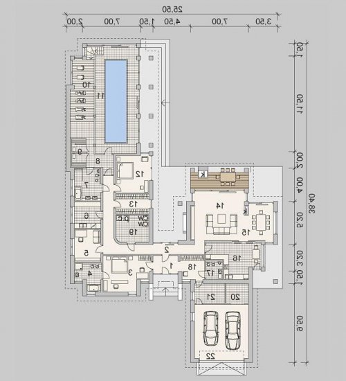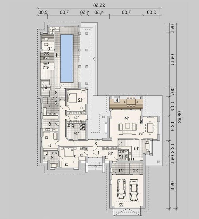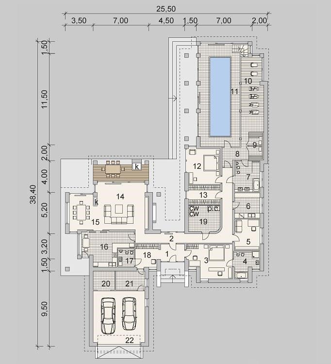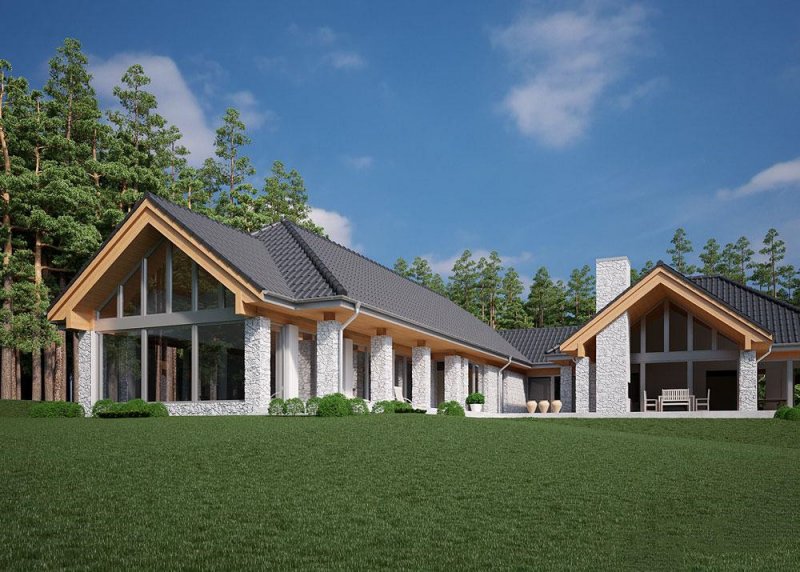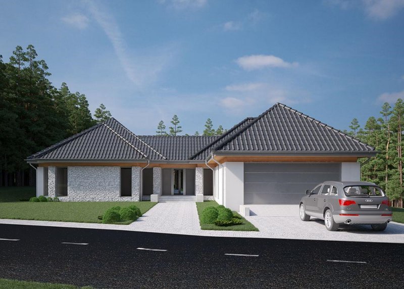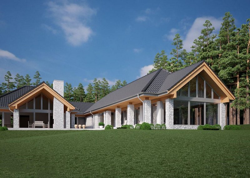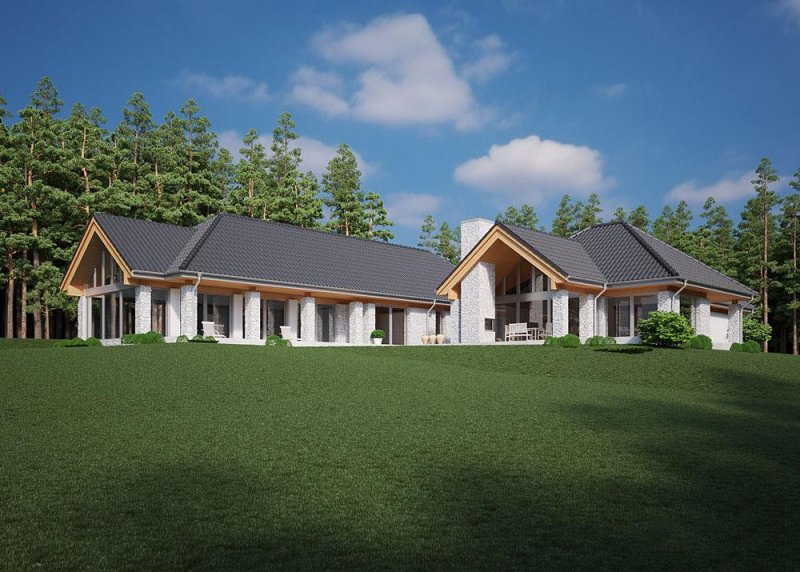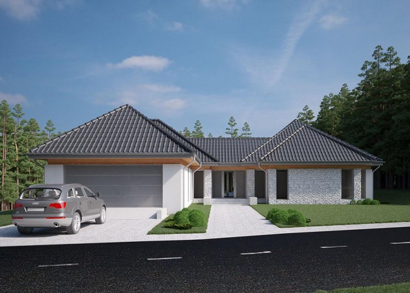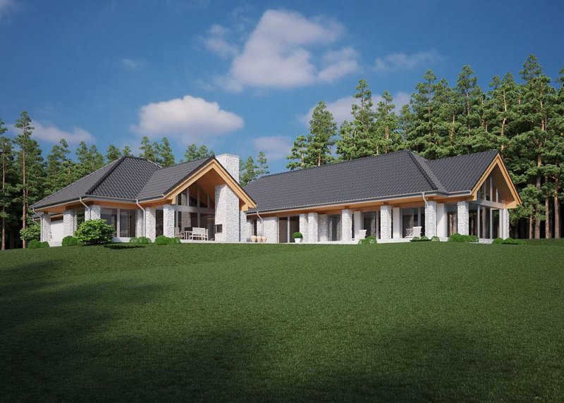 Projekt domu parterowego o powierzchni użytkowej 314.54 m².