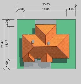 - Min. wymiary działki 25.85x21.47 m