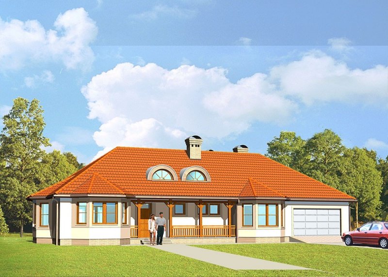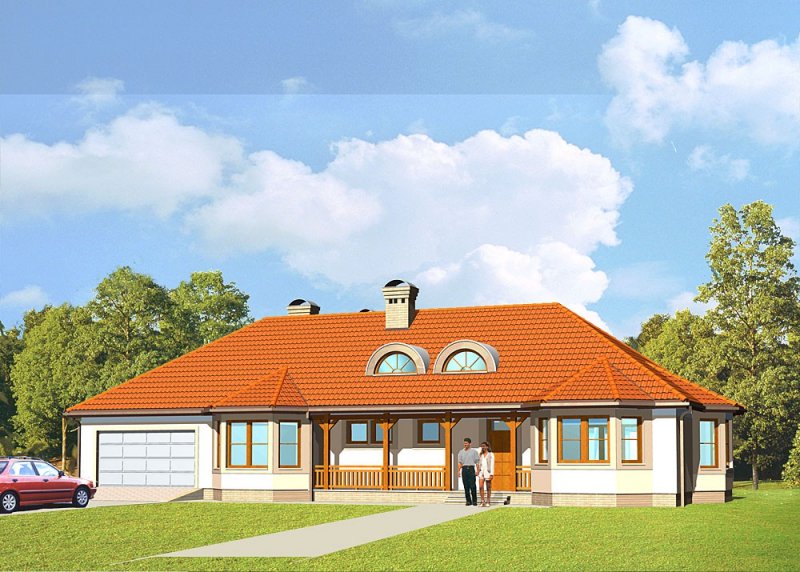 Dom jednorodzinny, parterowy, z garażem dwustanowiskowym.