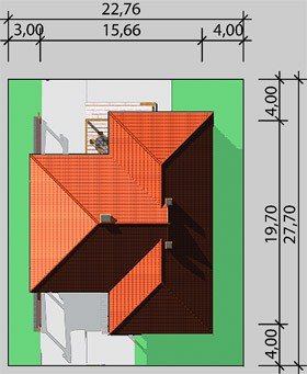 - Kąt nachylenia dachu 30.00°