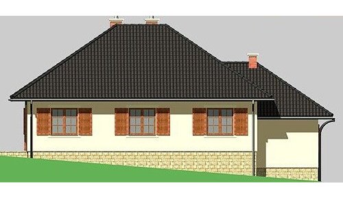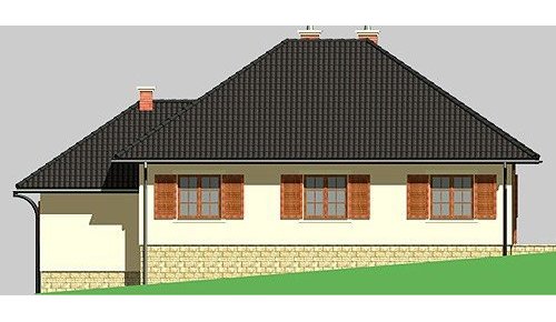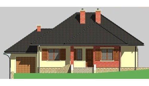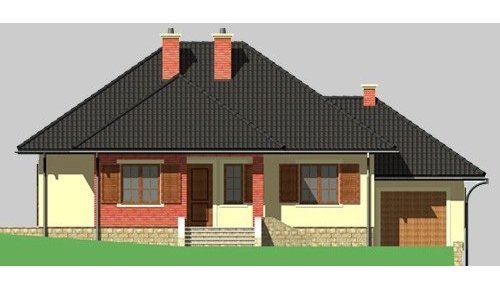 Dom jednorodzinny, parterowy, z jednostanowiskowym garażem.