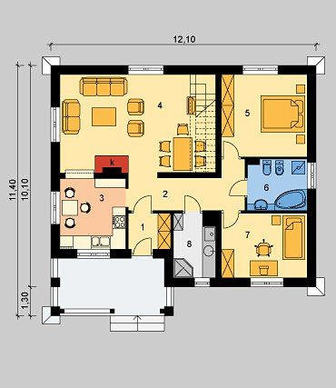 Dom jednorodzinny, parterowy, z możliwością adaptacji poddasza.