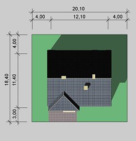 - Min. wymiary działki 20.10x18.40 m