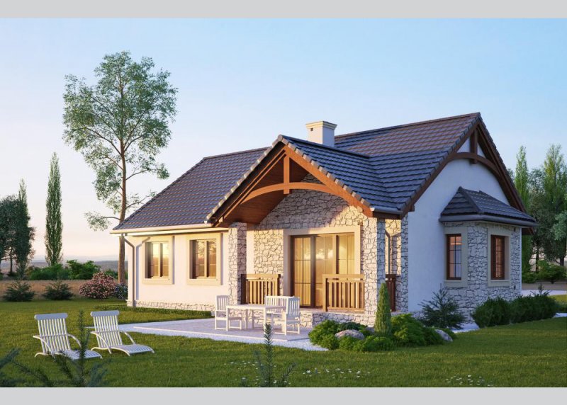 - Elewacje: wykończone tynkiem silikonowymoraz płytkami kamiennymi, cokół obłożony płytkami kamiennymi