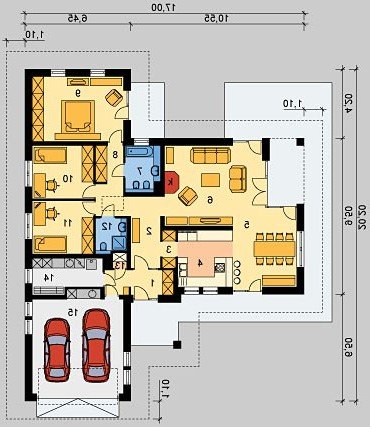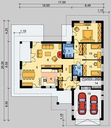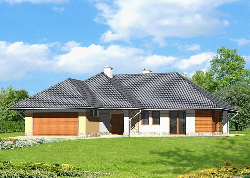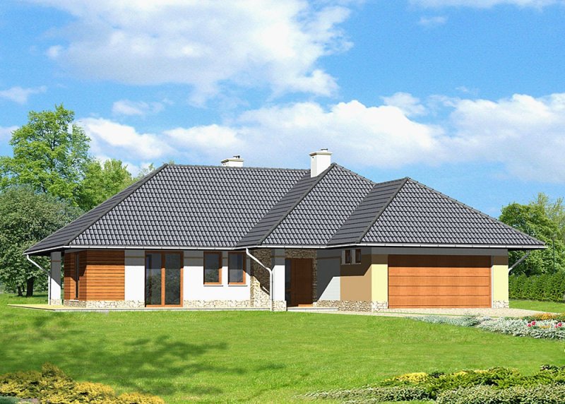 Dom jednorodzinny, parterowy, z dwustanowiskowym garażem.