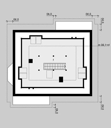 - Ściany zewnętrzne: murowane z pustaków styropianowych typu IZODOM 2000 o gr. 35 cm wypełnionych rdzeniem betonowym o gr.15 cm