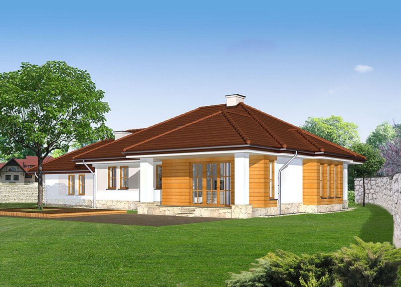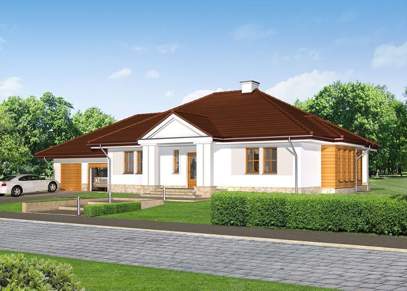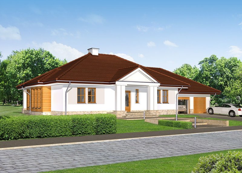 Dom jednorodzinny, parterowy, z garażem dwustanowiskowym.