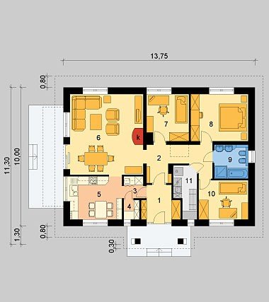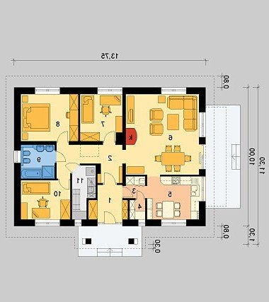 6. Pokój dzienny z jadalnią 30.67m