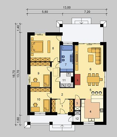 Dom jednorodzinny, parterowy, niepodpiwniczony.
