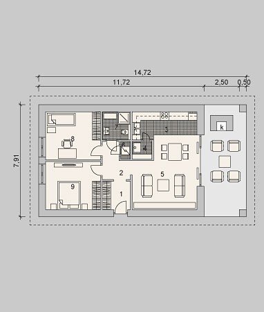 - Pokrycie dachu: dachówka ceramiczna Koramic Reńska Cosmo 15 firmy Winerberger - kolor: grafitowa angoba szlachetna