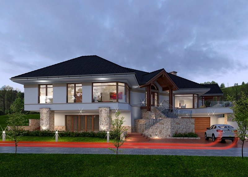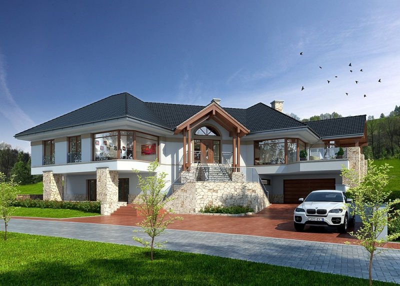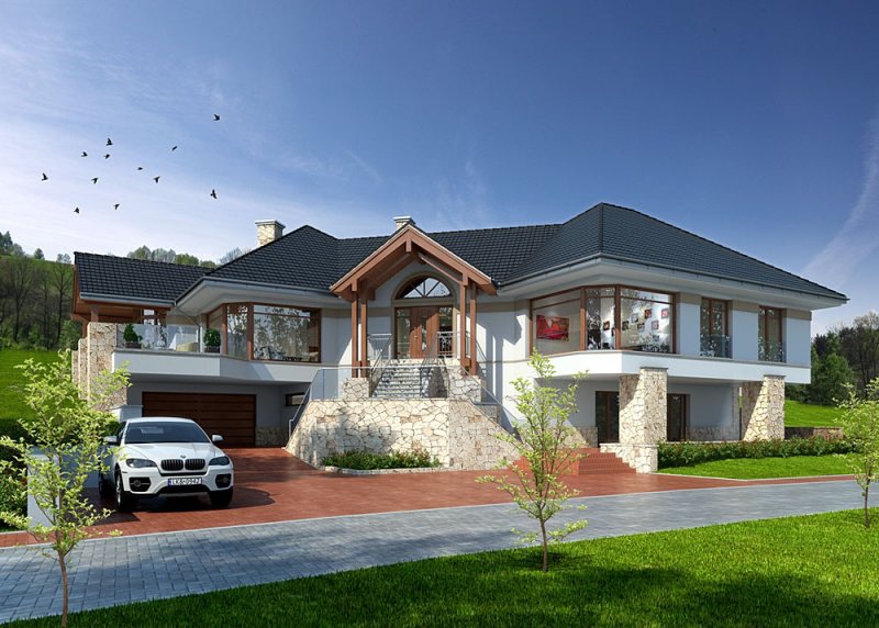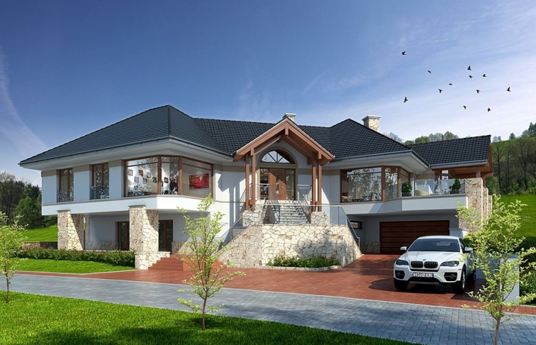 Projekt domu parterowego z użytkowym poddaszem.