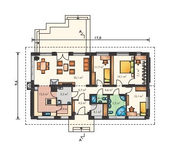 - pokój dzienny 35.1 m2