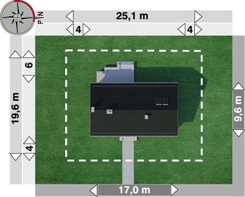 - Min. wymiary działki 25.10x19.60 m