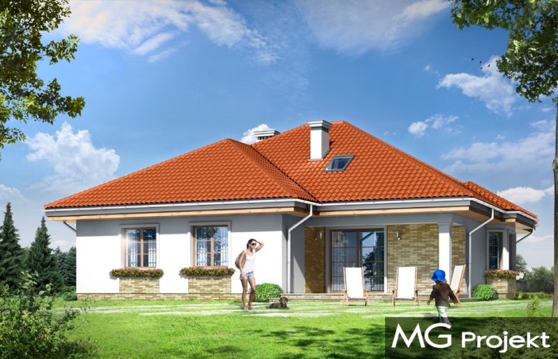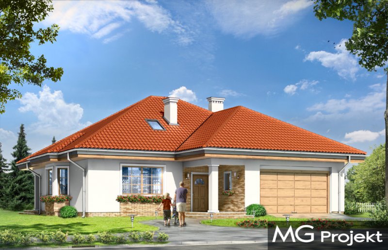 Natalia 3 to wariantowa wersja projektu Natalia. Zachowując podobny kształt bryły budynku, oraz układ pomieszczeń udało się zaprojektować dodatkową - trzecią sypialnię na parterze, dzięki czemu dom może zamieszkiwać czteroosobowa rodzina mieszkając tylko na parterze, zostawiając niewykończone poddasze jako strych nieużytkowy. Natalia 3 jest zatem domem parterowym, ze strychem możliwym do zaadaptowania na cele użytkowe w drugim etapie. W projekcie domu, na parterze, zaprojektowano otwartą przestrzeń dzienną - z salonem, aneksem jadalnym z wykuszem, kuchnią i holem, oraz część nocną - z trzema sypialniami i łazienką. Dodatkowo na parterze znajdują się: dwustanowiskowy garaż i kotłownia - dostępne z przedsionka. Strych można wykorzystać jako użytkowe poddasze z dodatkowymi pokojami. Schody mogą być zabudowane lub pozostać odkryte, jako dodatkowa ozdoba salonu, obok narożnego kominka, ściany telewizyjnej, wykusza jadalnego, czy szerokich drzwi balkonowych, otwierających salon na częściowo zadaszony taras i ogród. Pracownia posiada również odbicie lustrzane projektu.