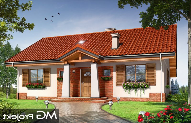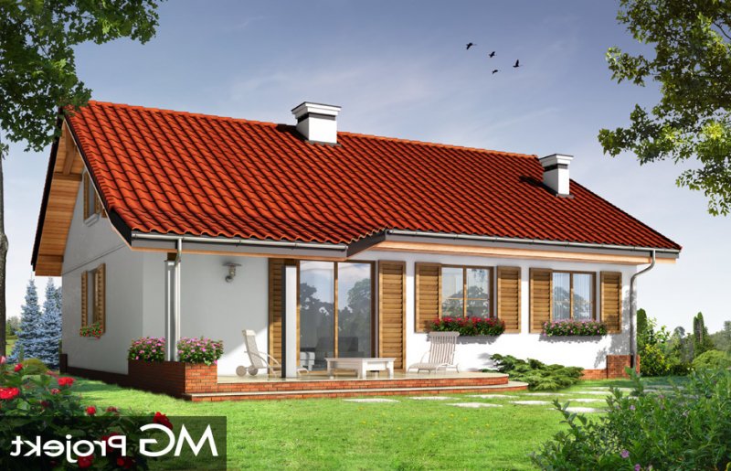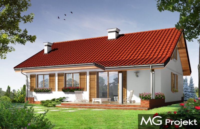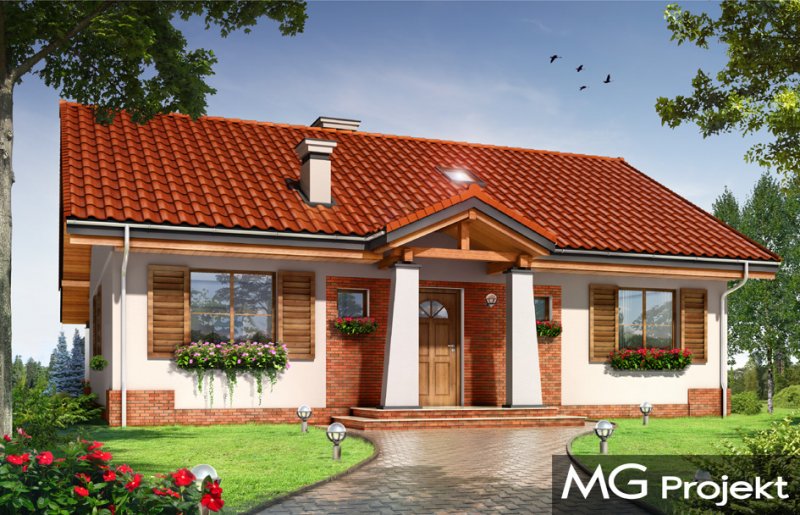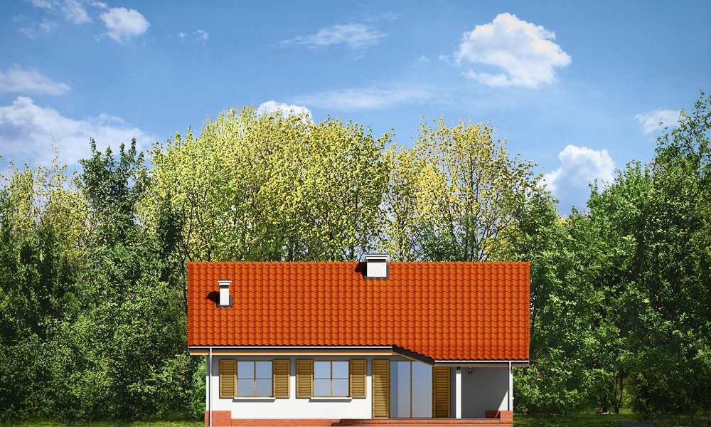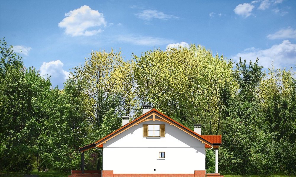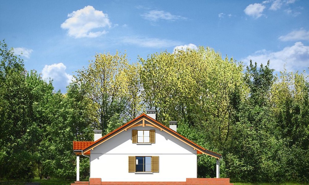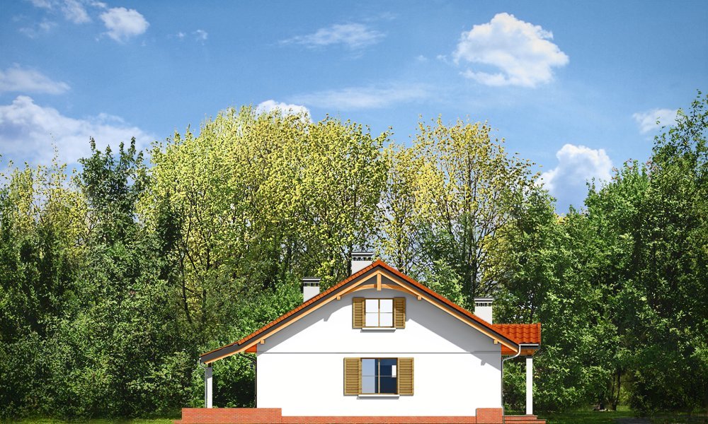 Niezapominajka to jednorodzinny, parterowy dom, przeznaczony dla czteroosobowej rodziny. Prostokątna bryła budynku została przekryta dwuspadowym dachem. Nieużytkowy strych nad parterem można łatwo zaadaptować na poddasze. Projekt architektonicznie nawiązuje do typowej, tradycyjnej stylistyki. Front domu z zaakcentowanym gankiem wejściowym wspartym na dwóch kolumnach z oknami po bokach, przypomina polski dworek. Elewacja tylna została podporządkowana raczej funkcjonalności i zrezygnowano tu z symetrycznego układu - częściowo zadaszony taras ogrodowy stanowi przedłużenie salonu. Wnętrze domu podzielono na część dzienną, z salonem, holem i częściowo otwartą kuchnią, oraz część nocną z trzema sypialniami i łazienką. W niewielkiej kotłowni można zainstalować piec gazowy. W holu obok kominka zaprojektowano miejsce na schody na strych. Domek stanowi świetną propozycję dla Inwestorów chcących niedrogo wybudować dom, jednocześnie zostawiając sobie możliwość wykończenia w drugim etapie dodatkowej przestrzeni na strychu - lub po prostu mieć duży przydatny przecież strych. Pracownia posiada wersję odbicia lustrzanego projektu.