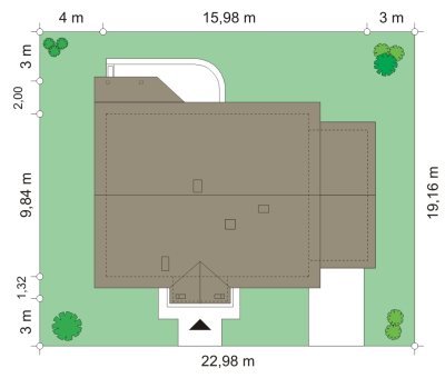 - Min. wymiary działki 22.98x19.16 m