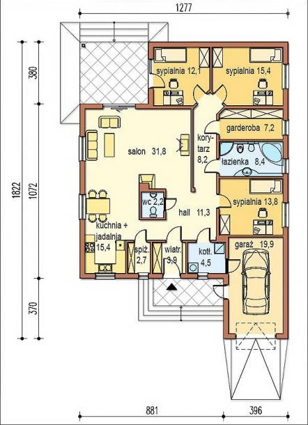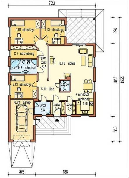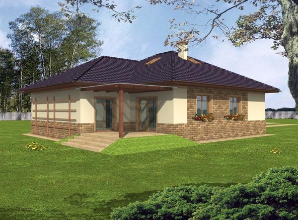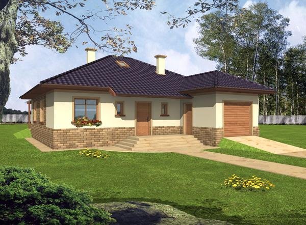 Jest to wygodny parterowy dom z nieużytkowym poddaszem i wbudowanym jednostanowiskowym garażem.