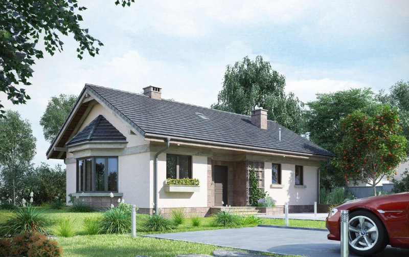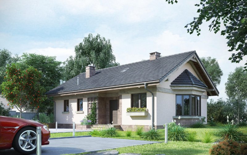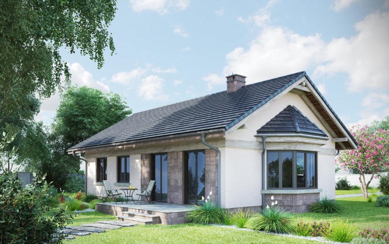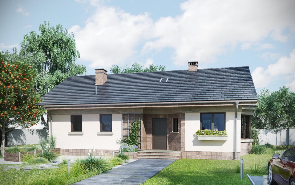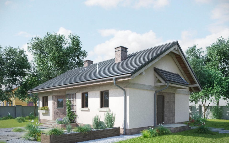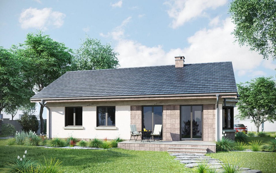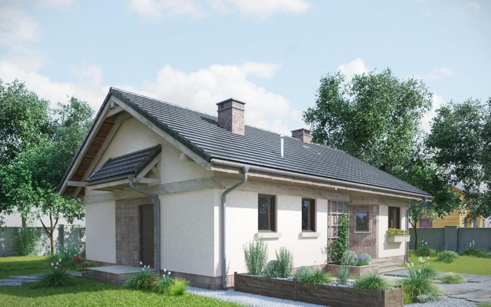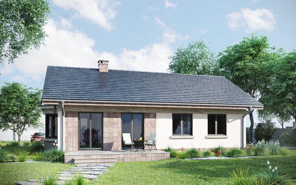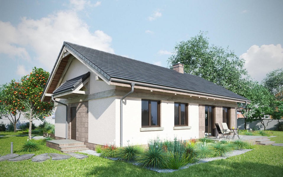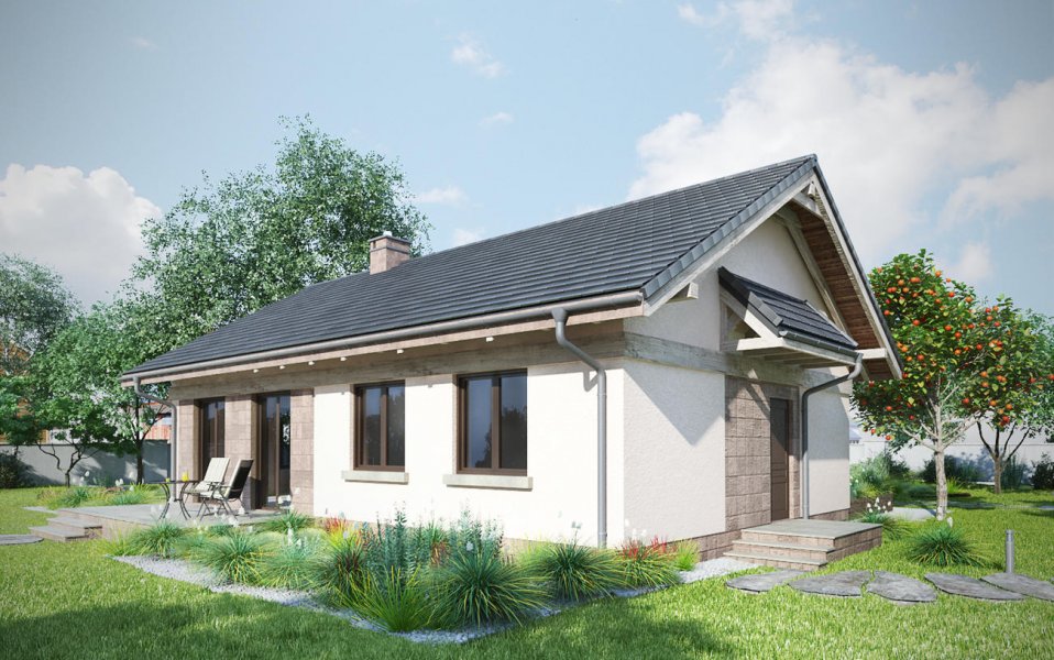 Projekt domu Nuta jest jednym z kilku parterowych, niepodpiwniczonych propozycji Archetonu o powierzchni użytkowej ok. 80m2, bez garażu. Zbudowany na planie wydłużonego prostokąta, z dwuspadowym, niezbyt stromym dachem, należy do rozwiązań z wejściem frontowym we wnęce elewacji równoległej do kalenicy. Tak jak w podobnej Agacie postawiono na wygodę przestrzeni w mniejszej ilości pomieszczeń (inaczej, niż w bardzo zbliżonej powierzchnią Alidzie - z trzema mniejszymi sypialniami i mniejszą kotłownią). Kotłownia Nuty jest wyjątkowo duża, jak na dom tej wielkości i, jak w Modrzyku, ma wyjście na zewnątrz. Ponadstandardowo przestronna jest także jedyna łazienka. Mieszkanie dysponuje dwoma sypialniami dla trzech osób oraz strefą dzienną z częściowo wydzielonymi: kuchnią ze spiżarnią i salonem. Łączy je otwarta na hol jadalnia w dekoracyjnym ryzalicie z daszkiem wysuniętym ze ściany bocznej i szczytu budynku. Znakiem rozpoznawczym projektu domu Nuta jest zaakcentowanie wejścia frontowego zapraszającym skosem jednej ze ścian podcienia. Nieco inny układ łazienki, kotłowni oraz trzecią sypialnię proponuje siostrzany projekt domu Nuta Karbo.
