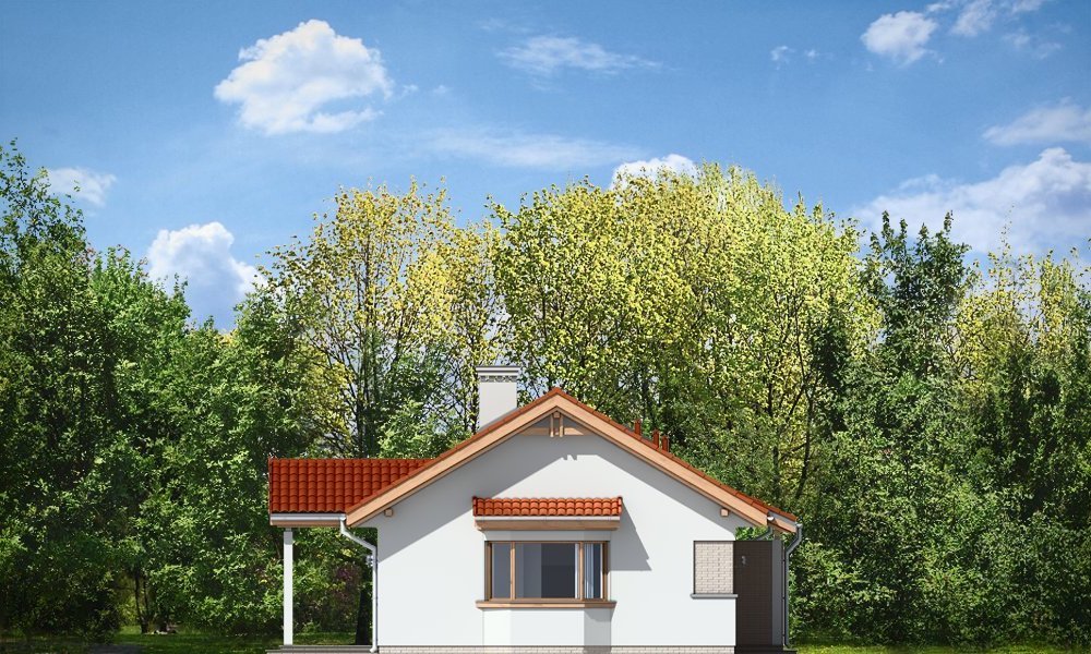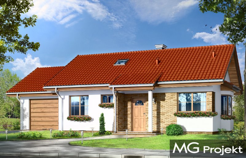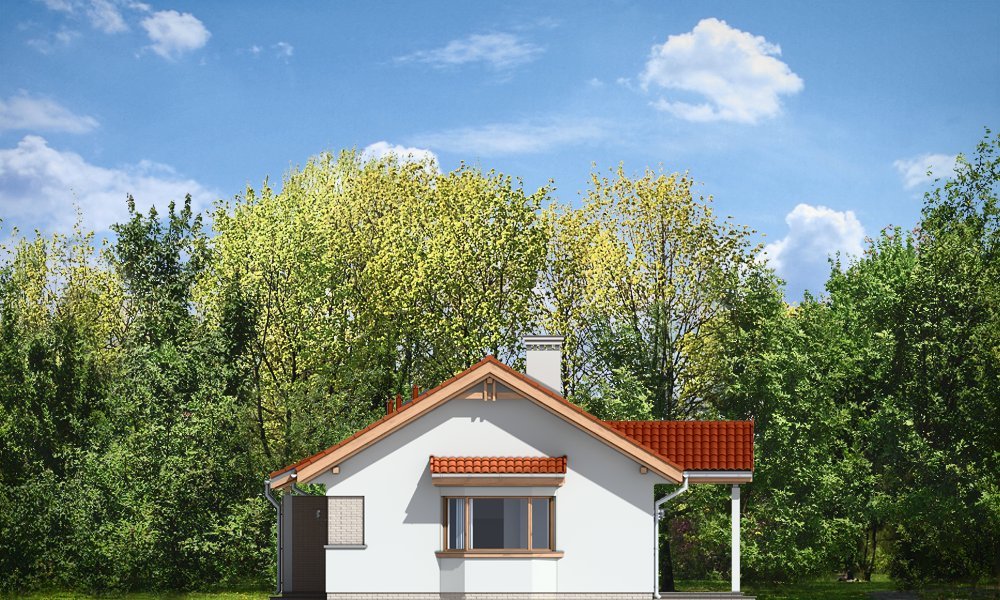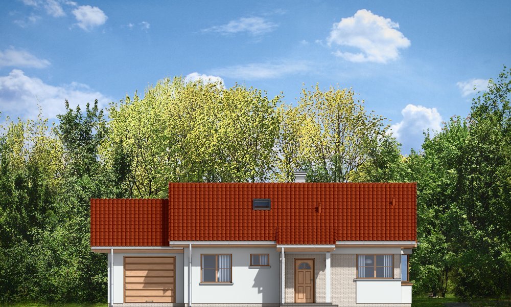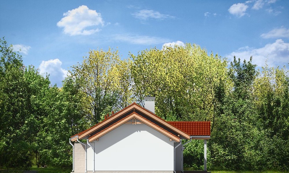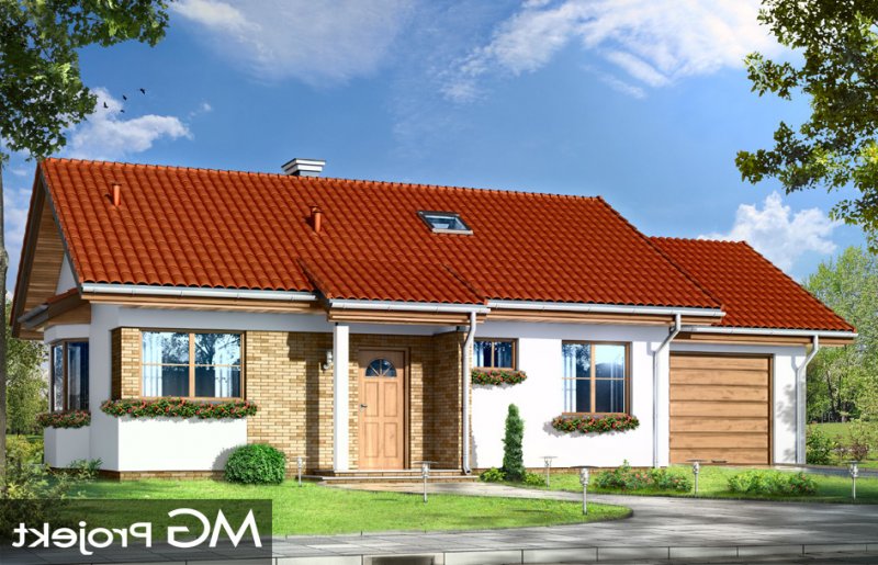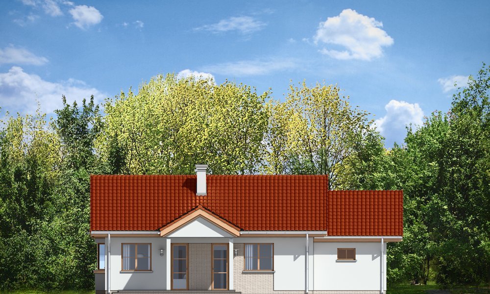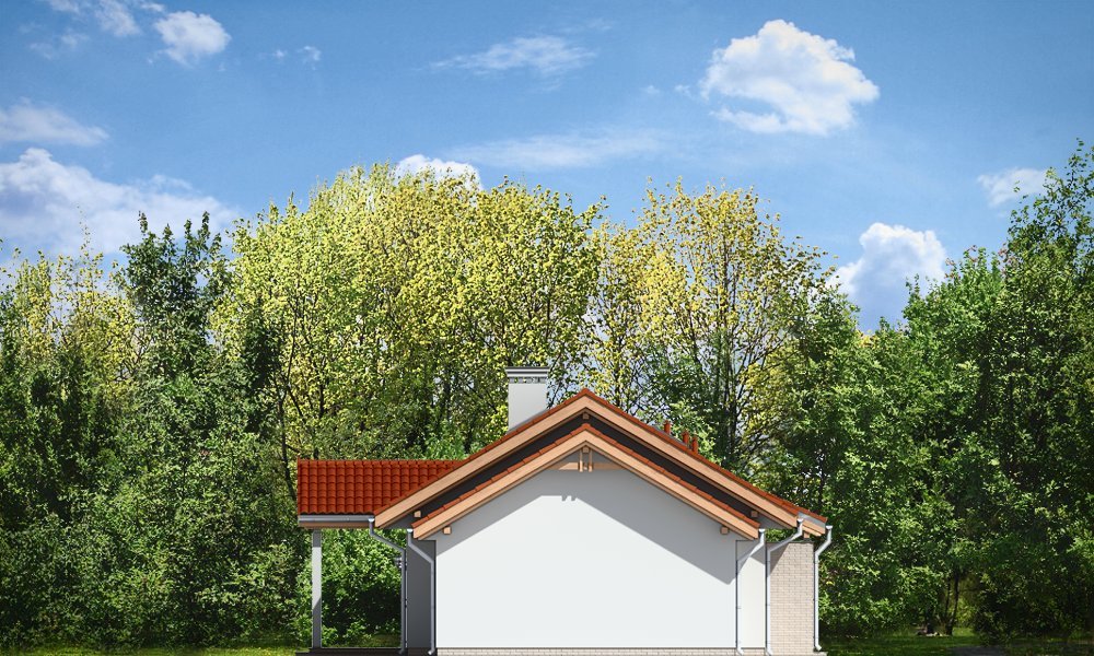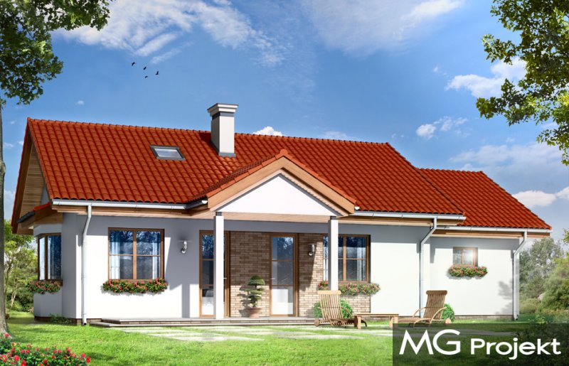Perełka 2 to domek bliźniaczo podobny do popularnego projektu Klejnot. Tym razem dom przykryty jest dwuspadowym prostym dachem. Domek jest parterowy, przeznaczony dla trzy-czteroosobowej rodziny. Bryła budynku zbudowana została na planie prostokąta z dobudowanym garażem. Wzbogacono ją gankiem wejściowym, wykuszem w elewacji bocznej i ogrodową werandą, będącą zadaszeniem nad częścią tarasu. Duże ładne przeszklenia z podziałami, fragmenty elewacji obłożone płytkami klinkierowymi, nowoczesne materiały - wszystkie te elementy tworzą udaną całość z tradycyjnym kształtem domu. Wnętrze domu to wygodne trzypokojowe mieszkanie z zapleczem technicznym. Reprezentacyjny salon z kominkiem łączy się przestrzennie z kuchnią i holem. Dwie sypialnie z łazienką znajdują się w przeciwnym skrzydle domu, w części nocnej. Schodami prowadzącymi z przedsionka dostajemy się na strych nieużytkowy, który jednak można łatwo zaadaptować na dodatkowe poddasze. Z boku domu dobudowano jednostanowiskowy garaż. Pracownia dysponuje także wariantem projektu w odbiciu lustrzanym.