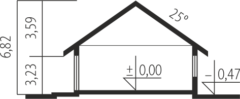 Dom zaprojektowany w technologii murowej ze stropem gęstożebrowym. Dach o konstrukcji drewnianej pokryty dachówką cementową IBF. Elewacje wykończono tynkiem mineralnym, okładziną kamienną i drewnianą. Stolarka okienna drewniana lub PVC.