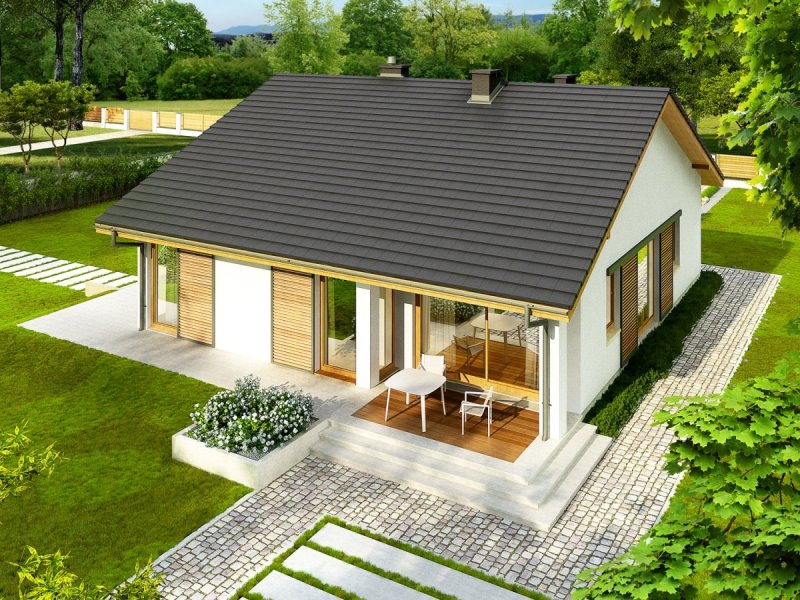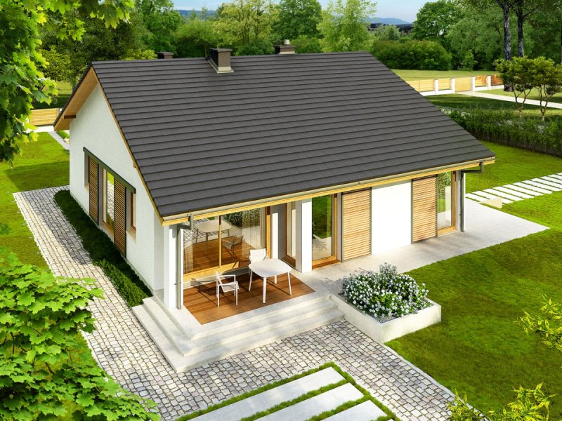 Dom parterowy, niepodpiwniczony, z garażem jednostanowiskowym, przeznaczony dla 3-4-osobowej rodziny. W strefie dziennej znajduje się salon z kominkiem, jadalnia oraz kuchnia ze spiżarnią. Zaplanowano tu również toaletę oraz praktyczne pomieszczenie gospodarcze. Strefę nocną tworzą trzy sypialnie oraz duża łazienka. Rafael III G1 to przykład nowoczesnego nawiązania do klasyki. Ze względu na swoją prostą i zwartą konstrukcję budynek jest ekonomiczny w realizacji i późniejszej eksploatacji. Wnętrza domu są maksymalnie doświetlone, co pozytywie wpływa na samopoczucie domowników i koszty zużycia energii elektrycznej. Rafael III G1 spełnia wysokie wymagania stawiane przez współczesność – łączy ergonomię, energooszczędność oraz komfort użytkowy. Całość dopełnia stylowe wykończenie elewacji – chłodna biel tynku znakomicie komponuje się z naturalnym odcieniem drewna, podkreślając elegancki charakter domu. Dom z Kolekcji BIANCO Ergonomia – Ekonomia – Funkcjonalność – Czysta forma – Glamour Kolekcja BIANCO Domy z Kolekcji BIANCO zostały zaprojektowane z najwyższą troską o ergonomię i komfort użytkowy. W każdym projekcie z Kolekcji BIANCO zminimalizowano ilość pionów instalacyjnych. Zgrupowanie w bliskim sąsiedztwie pomieszczeń, do których konieczne jest doprowadzenie wody, kanalizacji oraz systemu wentylacji pozwala ograniczyć koszty związane z wykonaniem instalacji wewnętrznych oraz dodatkowych pionów wentylacyjnych. W domach z Kolekcji BIANCO strefa dzienna jest wyraźnie oddzielona od części gospodarczej i sanitarnej, co podnosi komfort użytkowy, a dodatkowo akcentuje reprezentacyjny charakter. Strefę nocną zaprojektowano z dbałością o jej intymny charakter. W Kolekcji BIANCO dominuje ascetyczna wizja piękna – prosta, czysta, doskonała. Istnieje możliwość: - zbliźniaczenia - wykonania domu dwulokalowego - zmiany kąta nachylenia dachu do 30º oraz adaptacji poddasza na strych