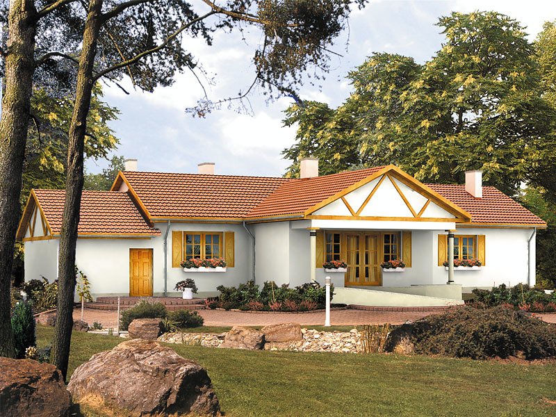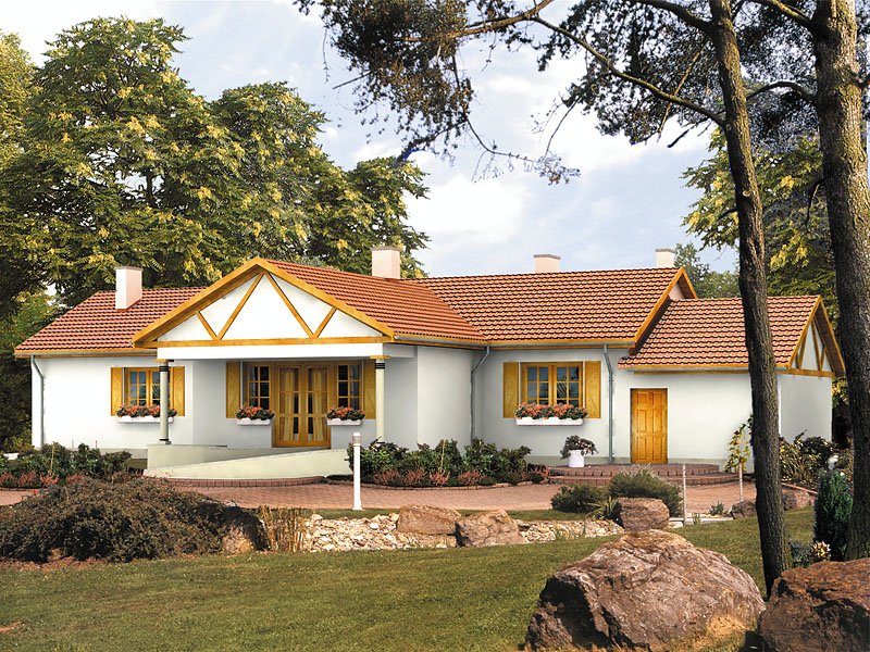 Parterowy, niepodpiwniczony dom jednorodzinny. Rozległy budynek przystosowany do potrzeb osoby niepełnosprawnej. Wygodny układ komunikacyjny, dużo łazienek.