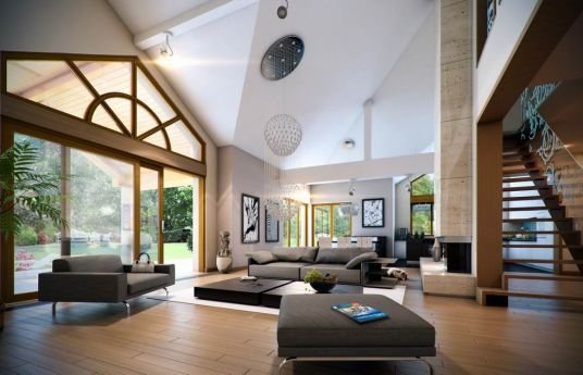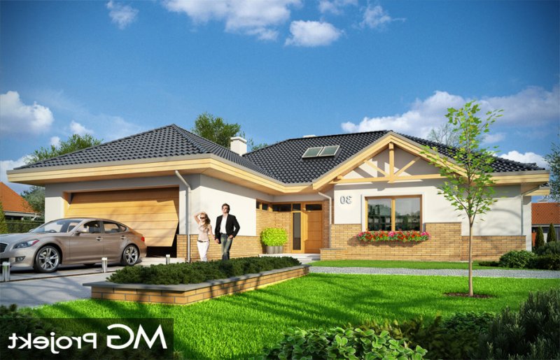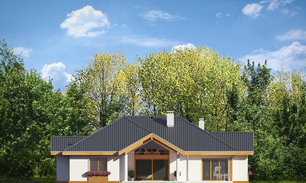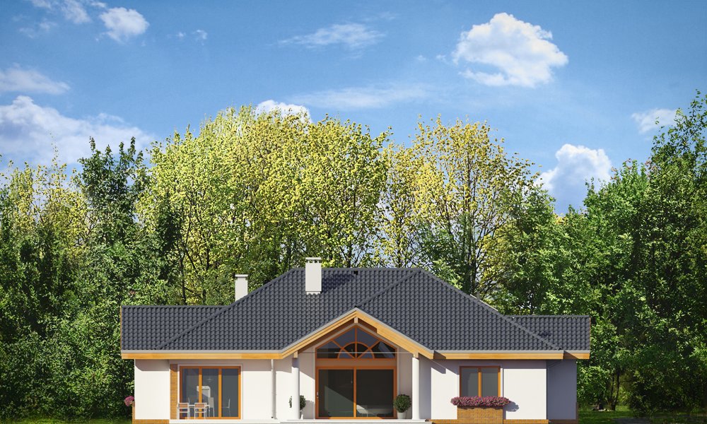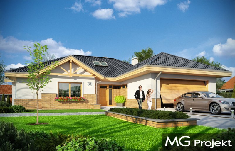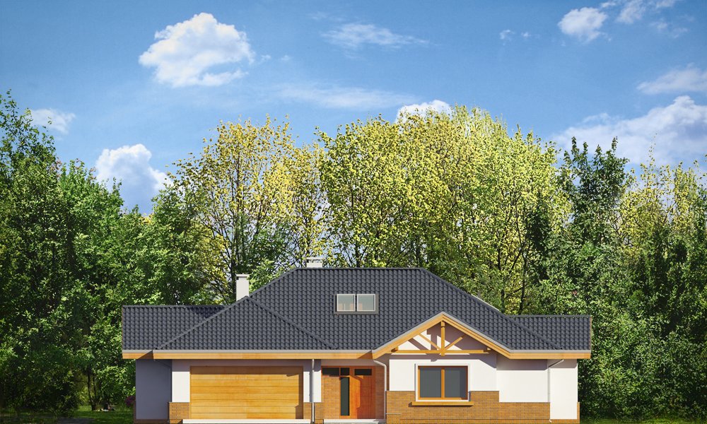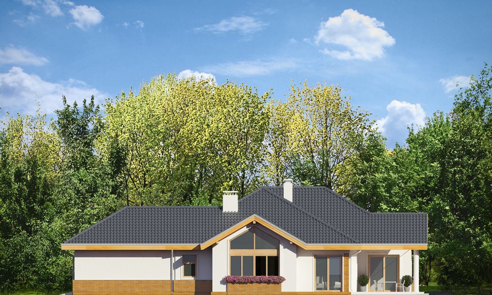 Rozłożysty to fantastyczna komfortowa willa, łącząca w sobie elementy nowoczesności i tradycyjnej formy. Dom jednorodzinny przeznaczony dla cztero-pięcioosobowej rodziny. Parterowy układ funkcjonalny, gdzie wszystkie pomieszczenia dostępne są z jednego poziomu, rozczłonkowana bryła przykryta łagodnymi dachami, część dzienna z wysokimi sufitami sięgającymi dachu, bliskość wnętrza z otaczającym ogrodem - to wszystko powoduje, że dom będzie wspaniałym miejscem do życia. Każda elewacja jest ciekawa i oryginalna. Front domu, z wykuszem zakończonym daszkiem, oraz mini-dziedzińcem wejściowym, z eleganckimi drzwiami z naświetlem. Elewacja ogrodowa z pięknym zadaszonym tarasem i przeszkleniami salonu. Nawet elewacje boczne – z dodatkowymi wykuszami są interesujące. W elewacjach zastosowano tradycyjne elementy z użyciem współczesnych detali. Dom ma solidny wygląd, a jednocześnie jest bardzo świeży i nowoczesny. Budynek doskonale wpasuje się w niemal każdy teren - najlepiej będzie wyglądał na większej działce, w otoczeniu rzadszej zabudowy. Projekt obejmuje – na parterze: część dzienną – z salonem, jadalnią, kuchnią i holem, część nocną – z czterema pokojami, oraz część gospodarczą - z garażem i kotłownią. Prócz tego można dowolnie wykorzystać przestrzeń strychu - jako zamknięty magazyn, lub jako otwartą na salon antresolę (na przykład pokój sportowy, czy hobby). Fenomenalną przestrzeń dzienną, z pustką nad salonem i kuchnią zobaczyć można na naszych wizualizacjach wnętrz. Budynek przez rozległy plan i spory dach nie będzie z pewnością najtańszy w realizacji, ale na pewno wart jest szaleństwa. Szczególnie jeśli już mieszkało się wcześniej w domu i spędziło pół życia biegając po schodach i nie wykorzystując w pełni wyższych kondygnacji. Zastosowane energooszczędne materiały, izolacje i instalacje sprawią, że dom nie będzie drogi w utrzymaniu. Pracownia posiada odbicie lustrzane projektu.