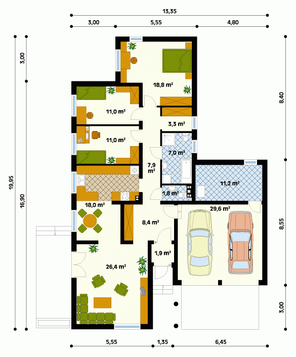 - Min. wymiary działki 20.35x28.95 m