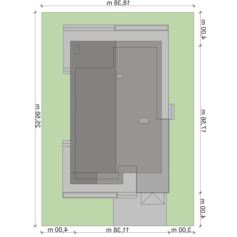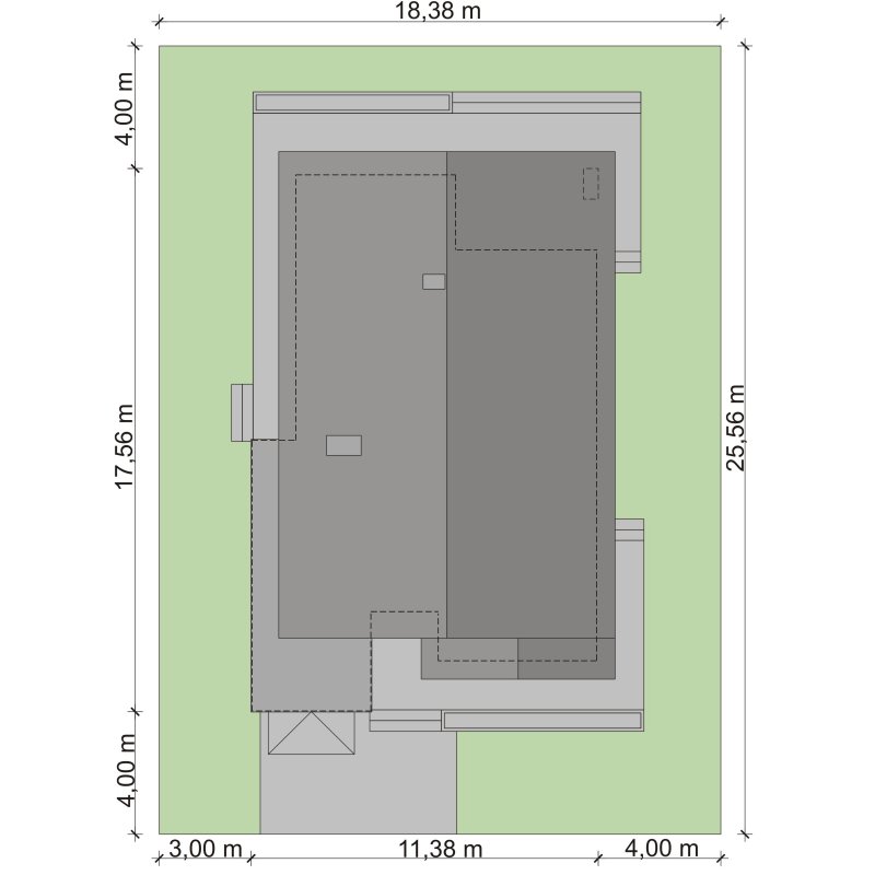 - Min. wymiary działki 18.38x25.56 m