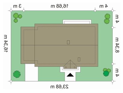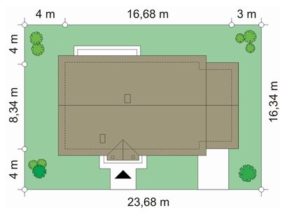 - Min. wymiary działki 23.68x16.34 m