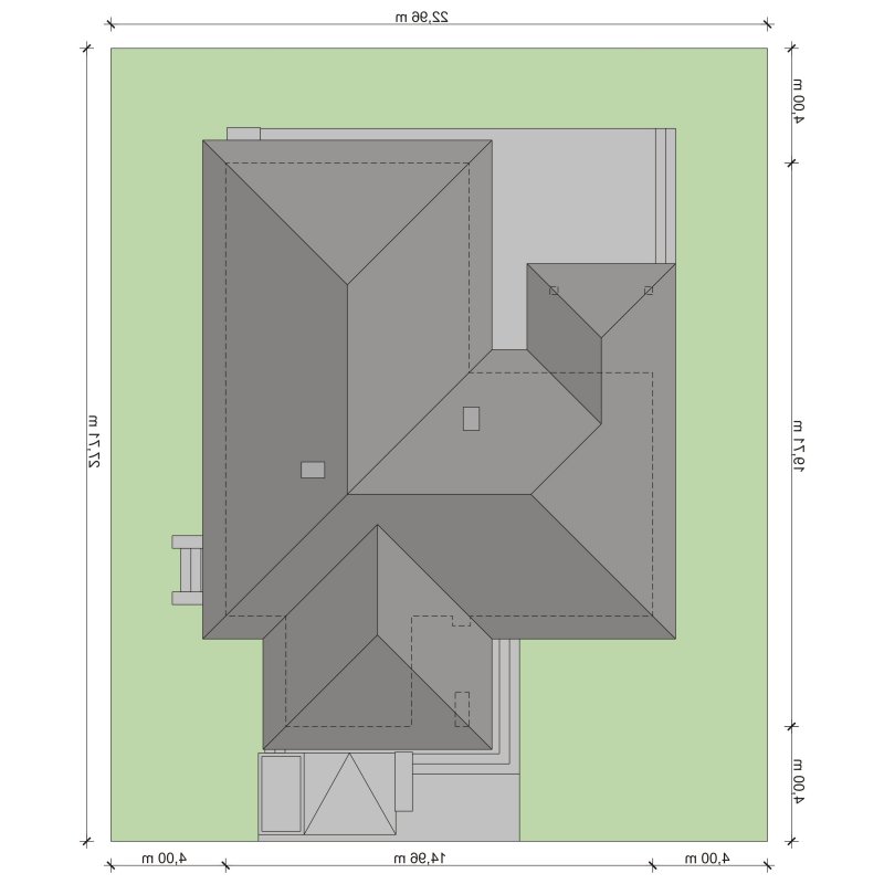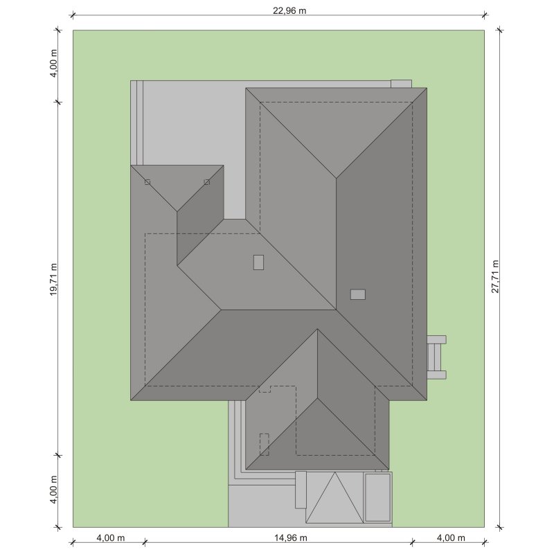 - Min. wymiary działki 22.96x27.71 m