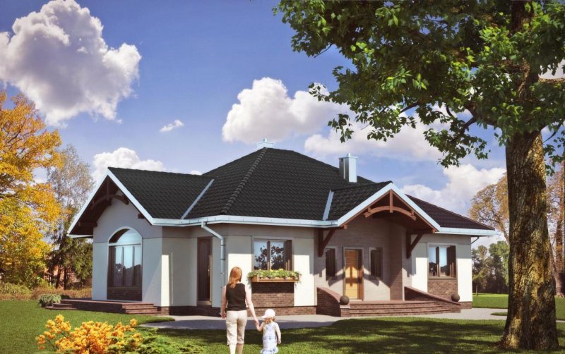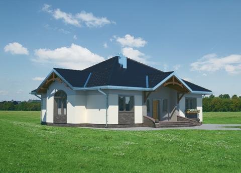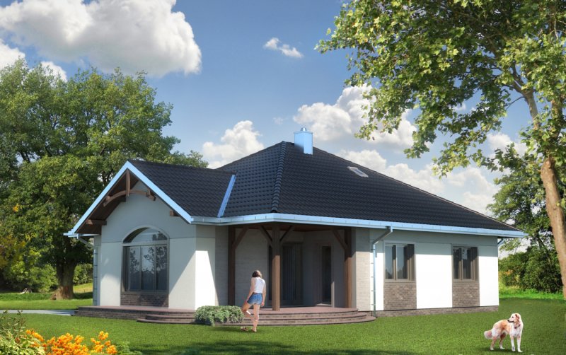 Projekt domu Sonatina prezentuje styl fantazyjny. Jest jedyną tego typu propozycją wśród domów parterowych bez garażu o powierzchni ok 120m2. Prostokątną osnowę rzutu wzbogacono o wnęki i ryzality, rozbudowując czterospadowy dach w urozmaicone, wielospadowe przekrycie. Drewniane wykończenie jego więźby przypomina dekoracyjny detal szwajcarski, spotykany w miejskim budownictwie willowym z początków ubiegłego stulecia. Gięte elementy powtarzają łuki okien w salonie i w głównej sypialni, umieszczonych na podłużnej osi bryły. Miękkie linie pojawiają się też nad wejściem głównym oraz w zarysie schodów i tarasów. Elementem organizującym układ funkcjonalny Sonatiny jest centralnie położony zespół łazienek z przylegającym do nich kominkiem. Oddziela on zespół z trzema pokojami sypialnymi od otwartego pokoju dziennego z gabinetem (biblioteką). Projekt domu Sonatina charakteryzuje konsekwentnie symetryczna kompozycja elewacji. Podkreśla to historyzujący, eklektyczny i nieco bajkowy charakter architektury.