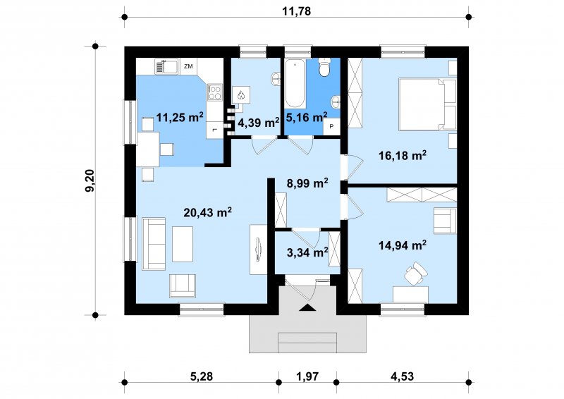 Projekt budynku mieszkalnego, jednorodzinnego, parterowego, niepodpiwniczonego. Do projektu dołączone jest zestawienie: stali, więźby dachowej oraz stolarki drzwiowej i okiennej, jak równieżbezpłatna zgoda na dokonanie zmian.
