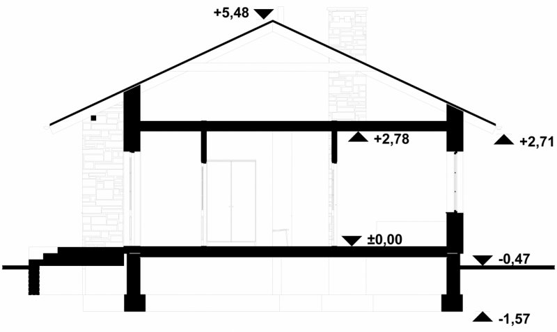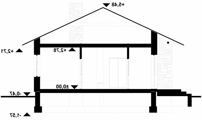 Budynek wykonany w technologii tradycyjnej. Ściany warstwowe grubości 39cm, murowane z bloczków „POROTHERM” grubości 25cm, ocieplone styropianem grubości 14cm. Ściany wewnętrzne z bloczków „POROTHERM” grubości 25cm i 12cm. Komin z cegły ceramicznej pełnej. Strop gęstożebrowy „POROTHERM”. Więźba dachowa dwuspadowa, drewniana, pokryta dachówką.