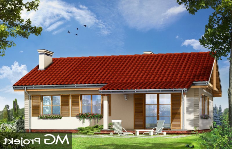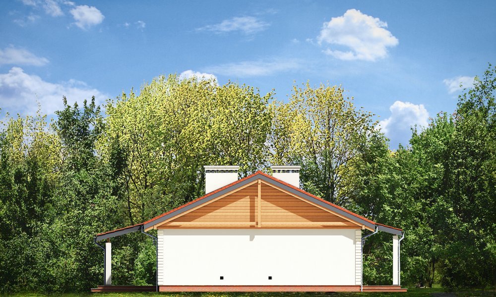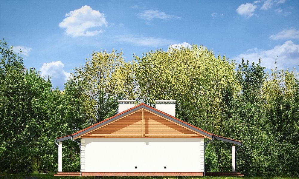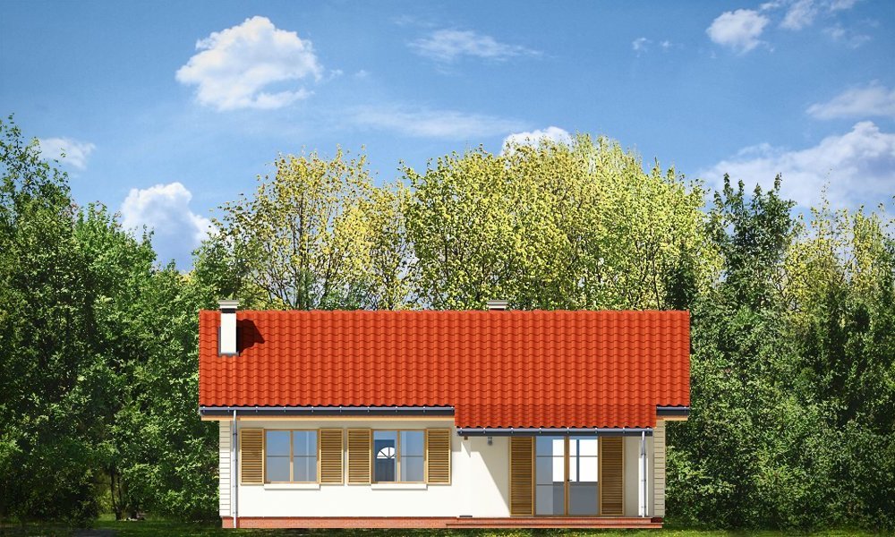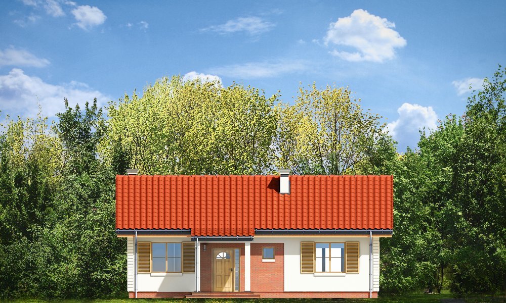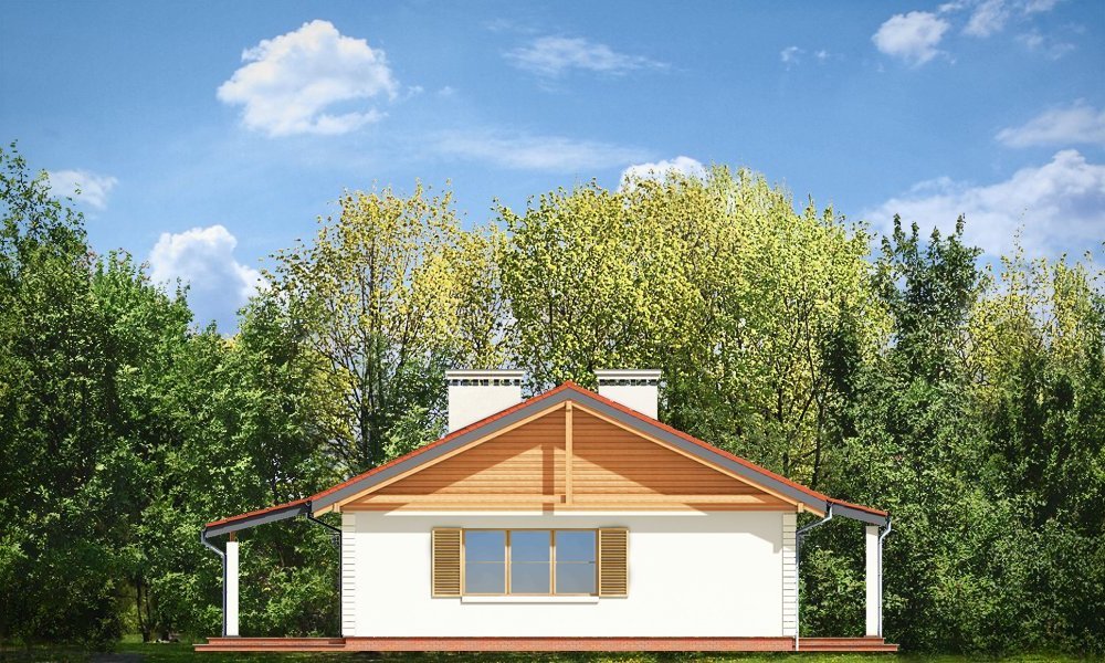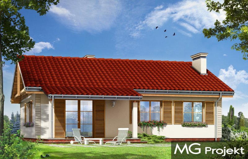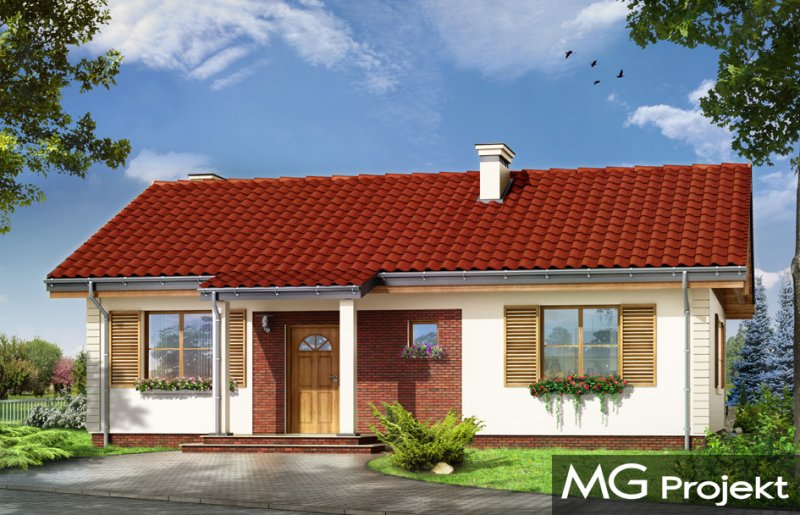 Szpak to prosty w budowie parterowy dom jednorodzinny, o spokojnej, skromnej architekturze. Budynek przeznaczony dla czteroosobowej rodziny. Prostokątna bryła domu przekryta dwuspadowym łagodnym dachem, z dodatkowymi podcieniami frontowego ganku i ogrodowego zadaszenia tarasu, kryje funkcjonalne, przemyślane wnętrze. Proporcjonalnie rozplanowane okna, ozdoby elewacji, dodatki - jak okiennice, czy kolumienki akcentujące wejście, nadają elewacjom atrakcyjnego wyglądu. Wewnątrz dom podzielono na część dzienną, z obszernym salonem z kominkiem, częściowo otwartą ustawną kuchnią i wygodnym holem, oraz na pokoje sypialne, będące trochę odseparowane od pokoju dziennego. Salon ma, przez szerokie przeszklone drzwi bardzo ładne połączenie z tarasem ogrodowym. Zadaszenie tarasu tworzy naturalne przedłużenie salonu. Każda z trzech sypialni ma zaprojektowane wnęki szafowe. Łazienka i dodatkowe wc z natryskiem ułatwią codzienne użytkowanie domu. Obok dużego przedsionka zaprojektowano kotłownię, przystosowaną do ogrzewania paliwem stałym. Dom został zaprojektowany w ponadczasowej estetyce, z pominięciem chwilowych mód, z zastosowaniem tradycyjnych, trwałych materiałów. To po prostu normalny dom. Pracownia posiada wersję odbicia lustrzanego projektu.