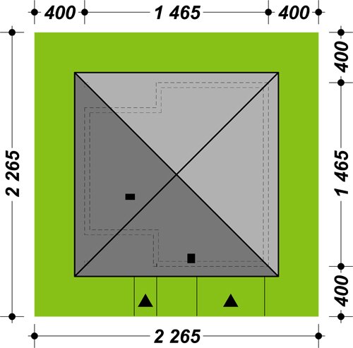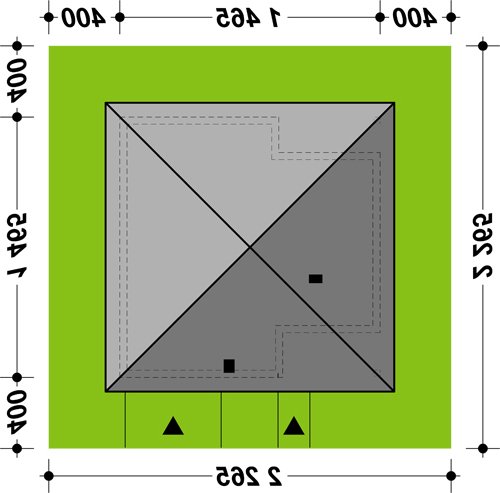 - Min. wymiary działki 22.65x22.65 m