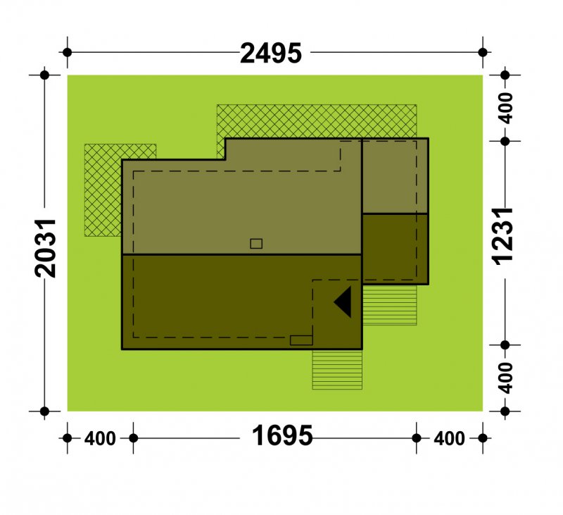 - Min. wymiary działki 24.95x20.31 m