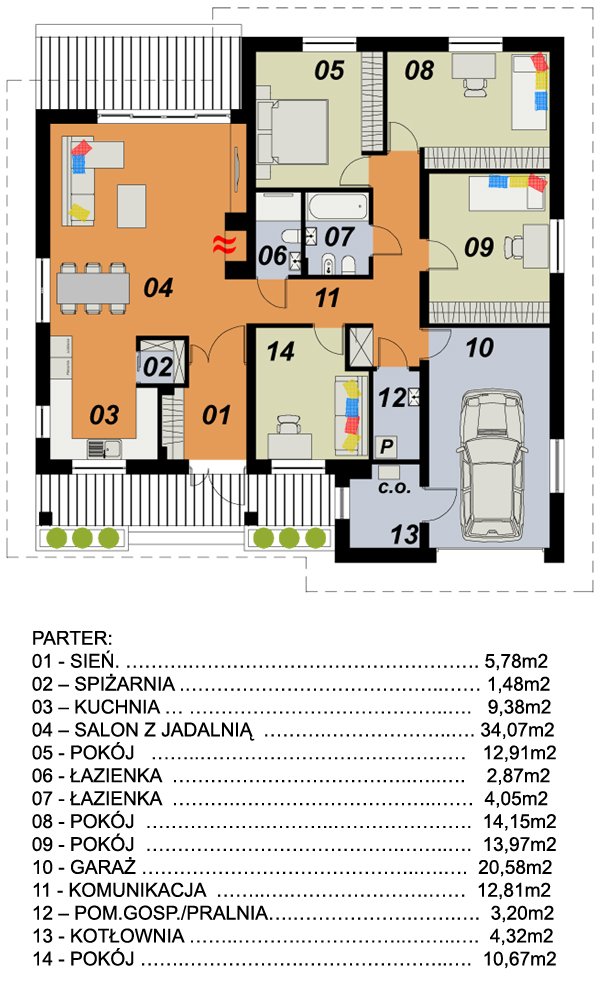 Projekt TK5A to przestronny dom, którym na dość małej powierzchni uzyskano aż 4 sypialnie. Zaprojektowany został z myślą o 3-5 osobowej rodzinie z zachowaniem zasad funkcjonalności i dobrego smaku.
