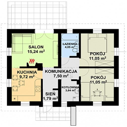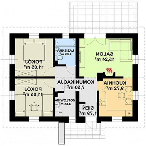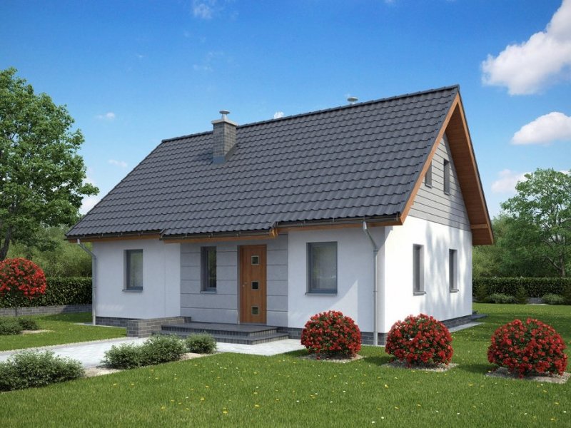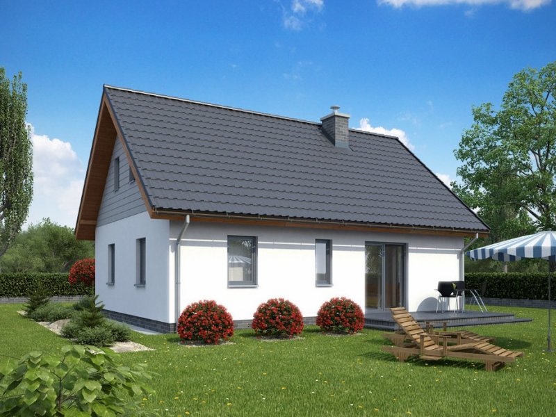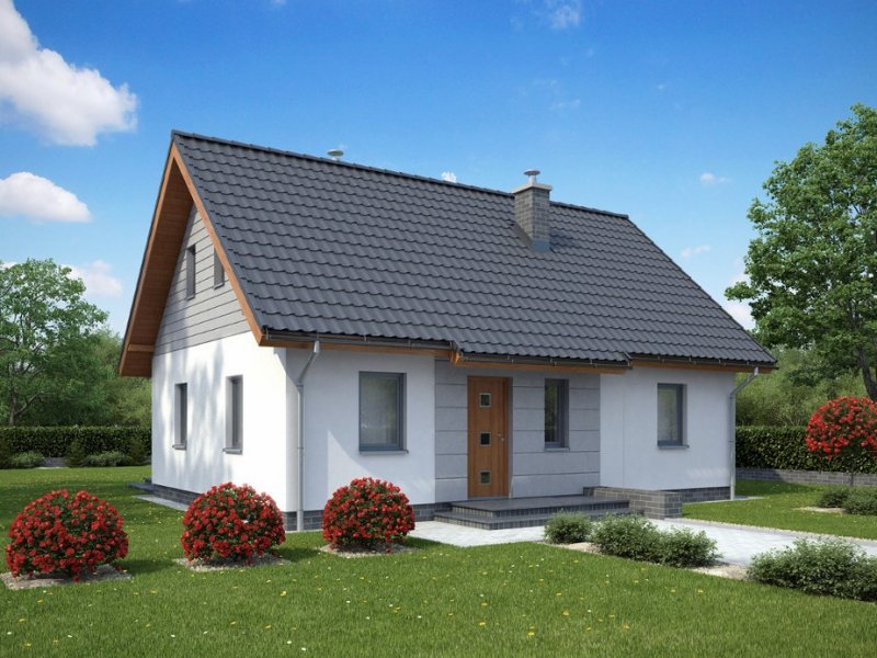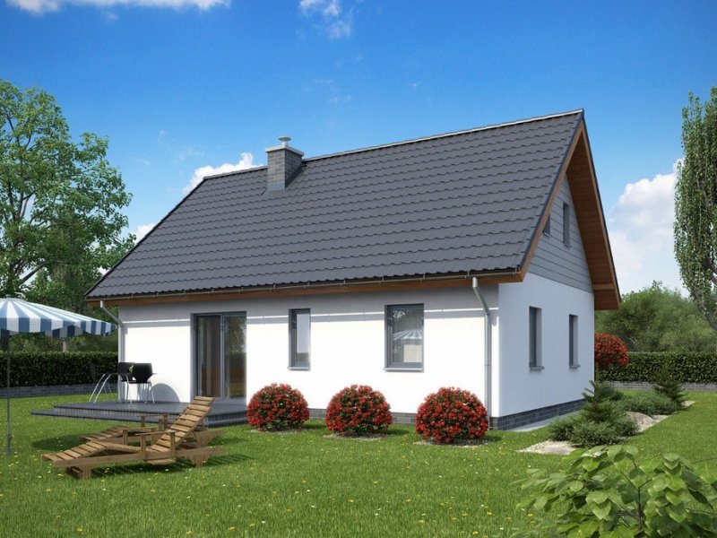 To niewielki domek, idealny dla osób poszukujących ekonomicznych i prostych rozwiązań. Dzięki swej zwartej bryle jest niezwykle funkcjonalny i tani w eksploatacji. Do jego zalet można zaliczyć także dużą kuchnię oraz powiększoną kotłownię, która może dodatkowo pełnić funkcję pomieszczenia gospodarczego. Stonowana kolorystyka elewacji i prostota bryły sprawiają, że jest to projekt bezpretensjonalny i pełen uroku.