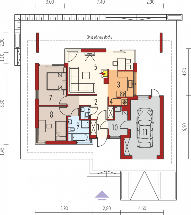 - Min. wymiary działki 20.30x22.30 m