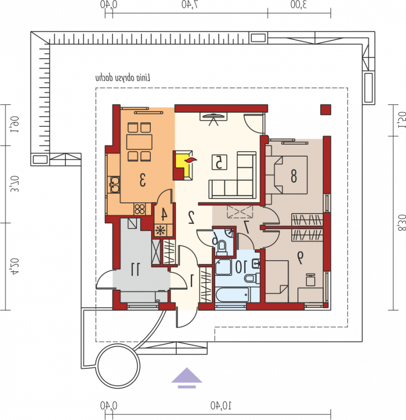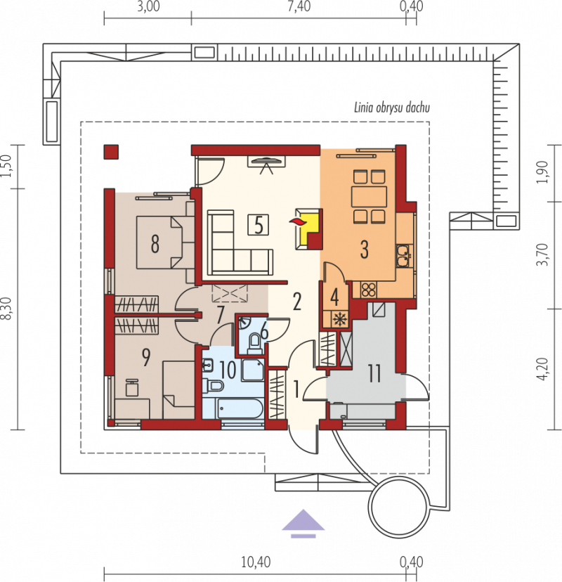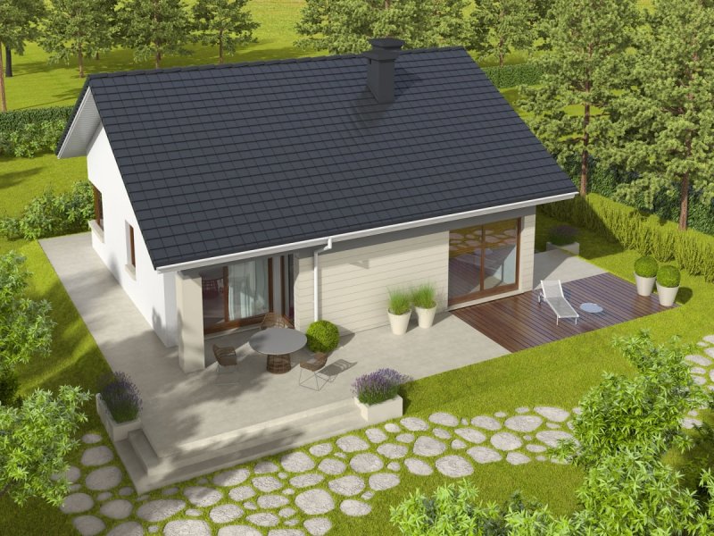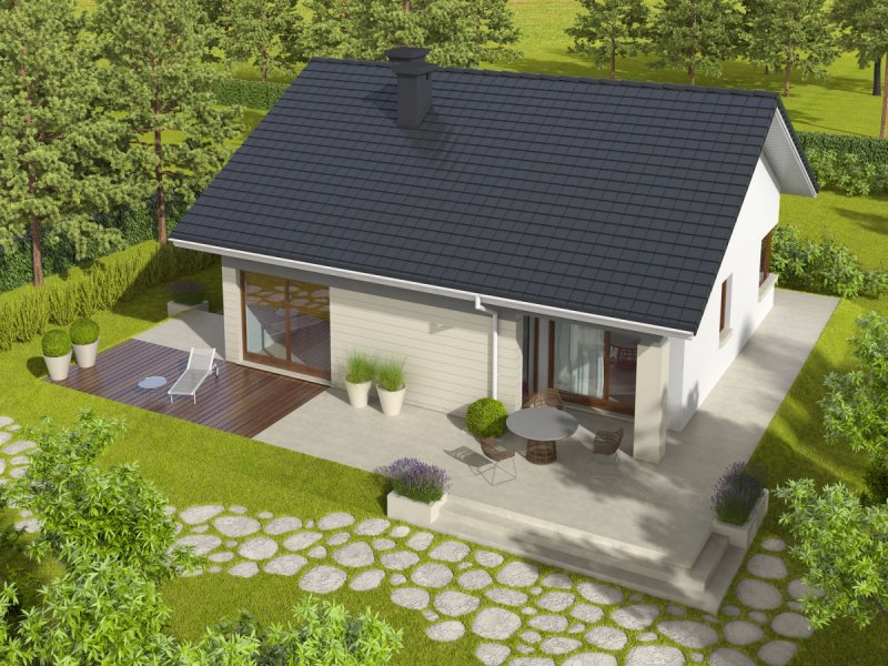 Dom parterowy, niepodpiwniczony. Przeznaczony dla 2-3-osobowej rodziny. W strefie dziennej znajdują się salon z kominkiem, jadalnia oraz kuchnia ze spiżarnią. Znalazła się tu również toaleta oraz duże pomieszczenie gospodarcze. Strefę nocną tworzą dwie sypialnie oraz wygodna łazienka. Płynne linie i gustownie dobrane materiały wykończenia elewacji sprawiają, że Tori III to dom, obok którego nie można przejść obojętnie. Perfekcyjnie rozplanowany układ funkcjonalny domu docenią nawet najbardziej wymagający inwestorzy. Atrakcyjnym elementem Tori III jest także częściowo zadaszony taras, który letnią porą przeobraża się w zaciszną strefę wypoczynkową. Istnieje możliwość: - podpiwniczenia - zbliźniaczenia - wykonania domu dwulokalowego - adaptacji poddasza na strych