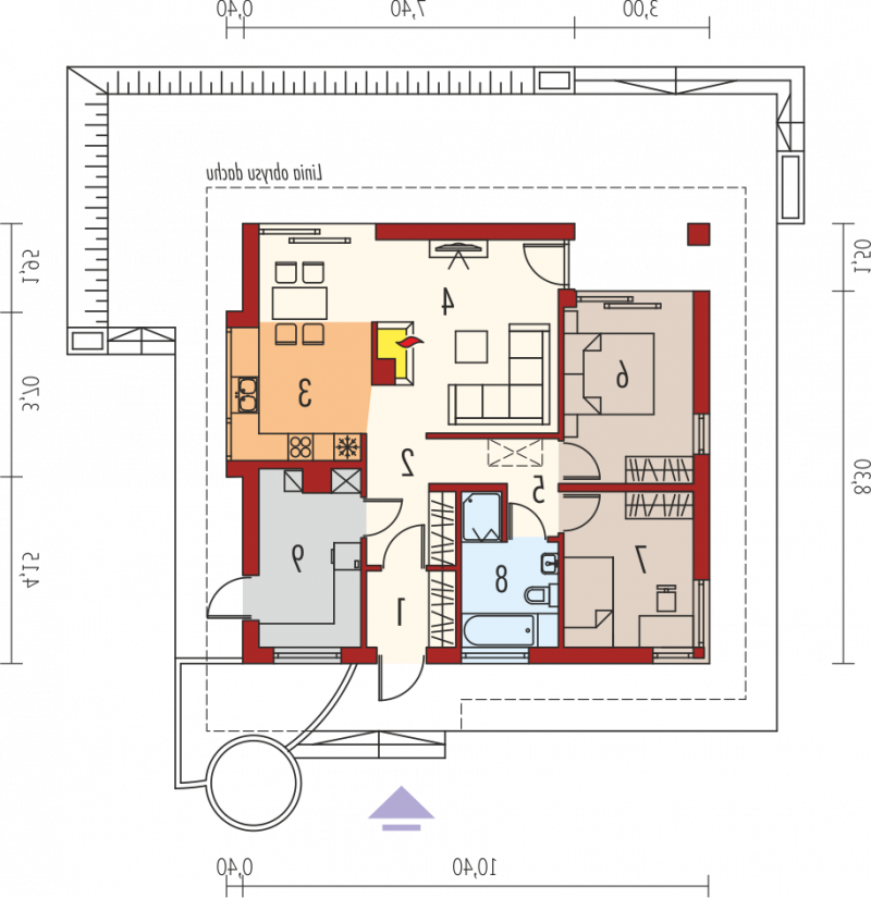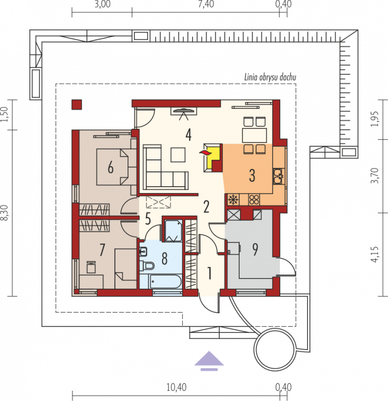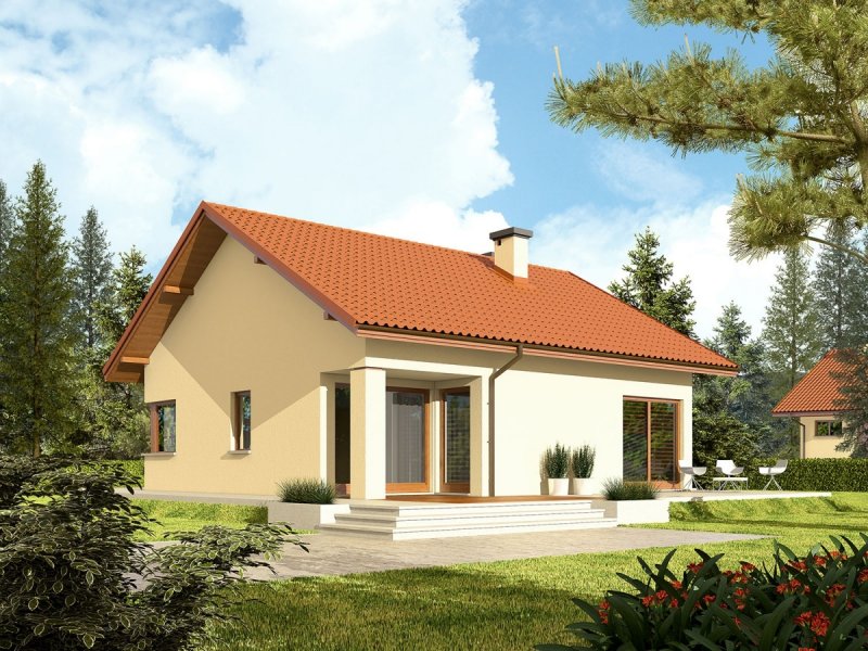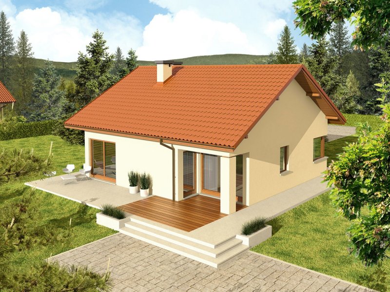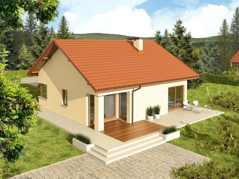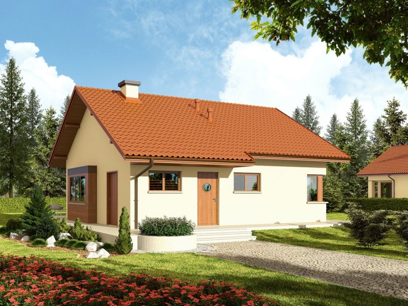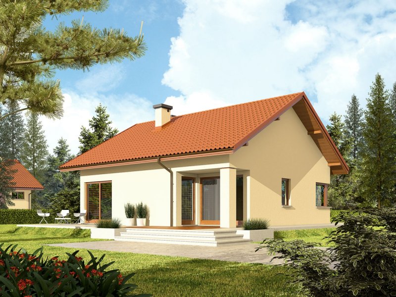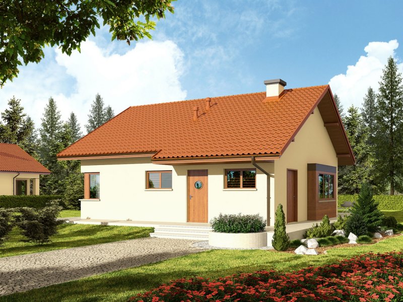 Dom parterowy, niepodpiwniczony. Przeznaczony dla 2-3-osobowej rodziny. W strefie dziennej znajdują się salon z kominkiem, jadalnia oraz kuchnia. Strefę nocną tworzą dwie sypialnie oraz wygodna łazienka. Zaplanowano tu również duże pomieszczenie gospodarcze – kotłownię. Perfekcyjnie zaprojektowany układ funkcjonalny domu docenią nawet najbardziej wymagający inwestorzy. Atrakcyjnym elementem Tori III ECONOMIC jest także częściowo zadaszony taras, który letnią porą przeobraża się w zaciszną strefę wypoczynkową. Torii III ECONOMIC to dom ekonomiczny w realizacji i późniejszej eksploatacji, który doskonale wpisze się w każdy krajobraz. Prosta konstrukcja w połączeniu ze sprawdzonym zestawem rozwiązań sprawia, że dom wyróżnia ergonomia i komfort użytkowy. Ograniczenie detali architektonicznych zachęca do zabawy z kolorystyką elewacji. Kolekcja ECONOMIC – domy ładne i tanie w budowie Kolekcja ECONOMIC została zaprojektowana z troską o ekonomiczny charakter budowy. Prosta bryła, ograniczona ilość detali architektonicznych oraz zminimalizowana liczba pionów instalacyjnych sprawia, że domy z Kolekcji ECONOMIC są tanie w realizacji i późniejszej eksploatacji. Atuty Kolekcji ECONOMIC • Prosta konstrukcja domu – niskie koszty budowy • Standardowe wymiary stolarki okiennej – najtańsze rozwiązania profili okiennych • Brak okrągłych okien, rozbudowanych przeszkleń i rolet • Nowoczesna interpretacja klasycznej bryły domu • Optymalny układ funkcjonalny • Idealne proporcje budynku – atrakcyjny efekt estetyczny • Czysta forma bez zbędnych detali Istnieje możliwość: - podpiwniczenia - zbliźniaczenia - adaptacji poddasza na strych