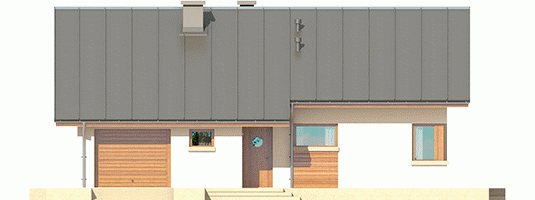 Dom zaprojektowany w technologii murowej ze stropem gęstożebrowym. Dach o konstrukcji drewnianej pokryty blachą. Elewacje wykończono tynkiem mineralnym i okładziną kamienną. Stolarka okienna drewniana lub PVC.
